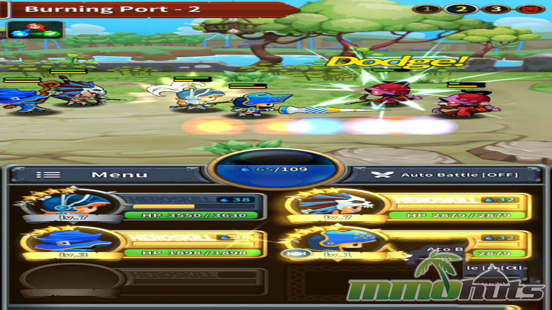Skills are activated by tapping the Hero portraits once their meters are ready, and mana management matters because it refills over time rather than being unlimited. Even though basic attacks are automated, choosing the right moment to stun, heal, buff, or drop area damage can decide whether a fight stays clean or spirals into a wipe on tougher content.