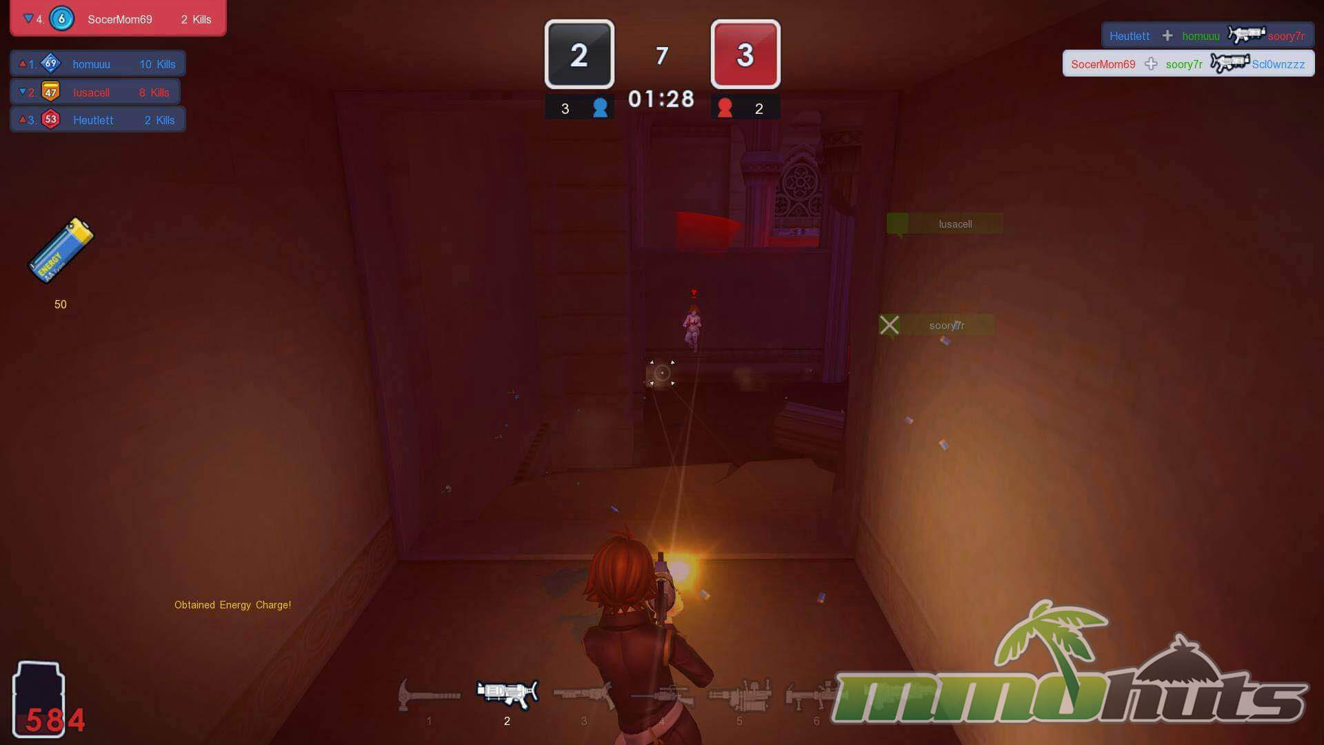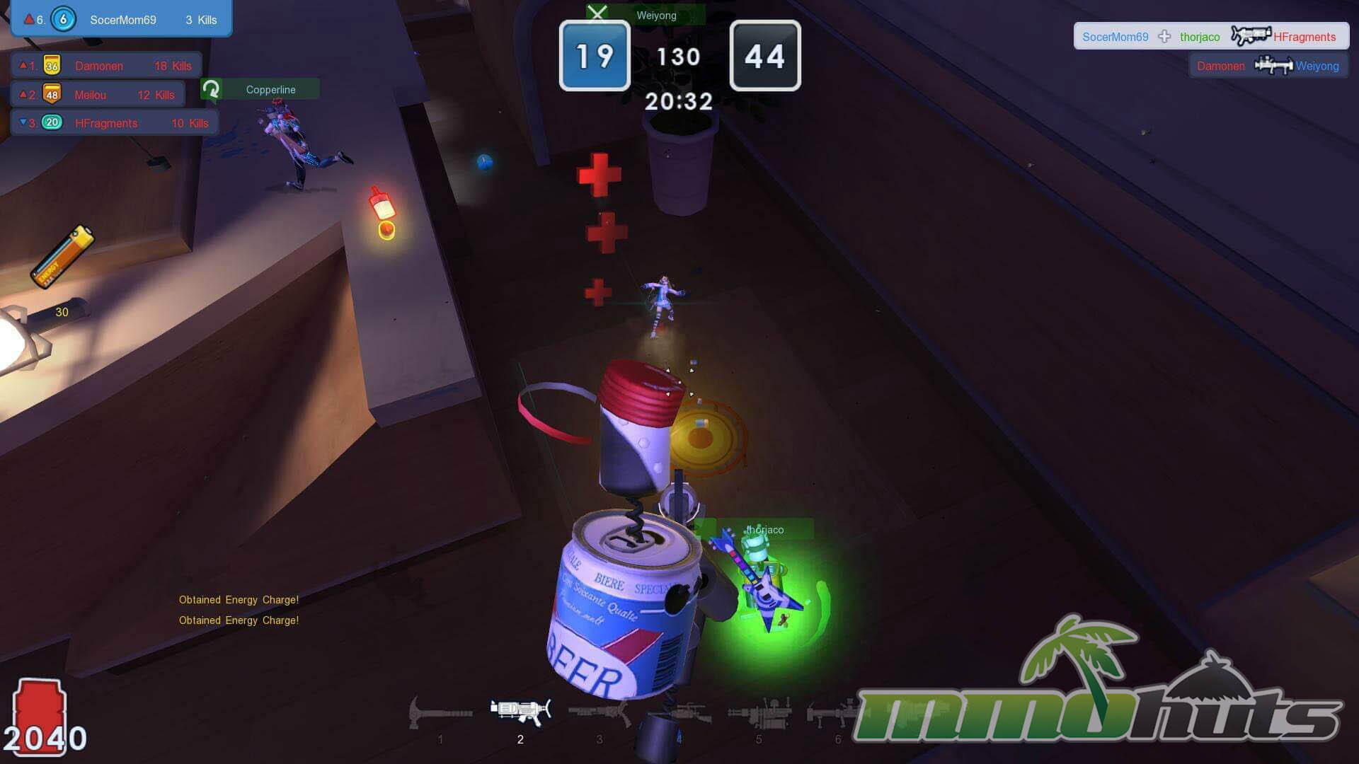 MicroVolts also rewards aggression by dropping small health vials on kills. Because anyone can pick them up, controlling the immediate area after a frag matters. Players who consistently scoop up these drops can stay active longer and swing momentum, especially in clustered fights.