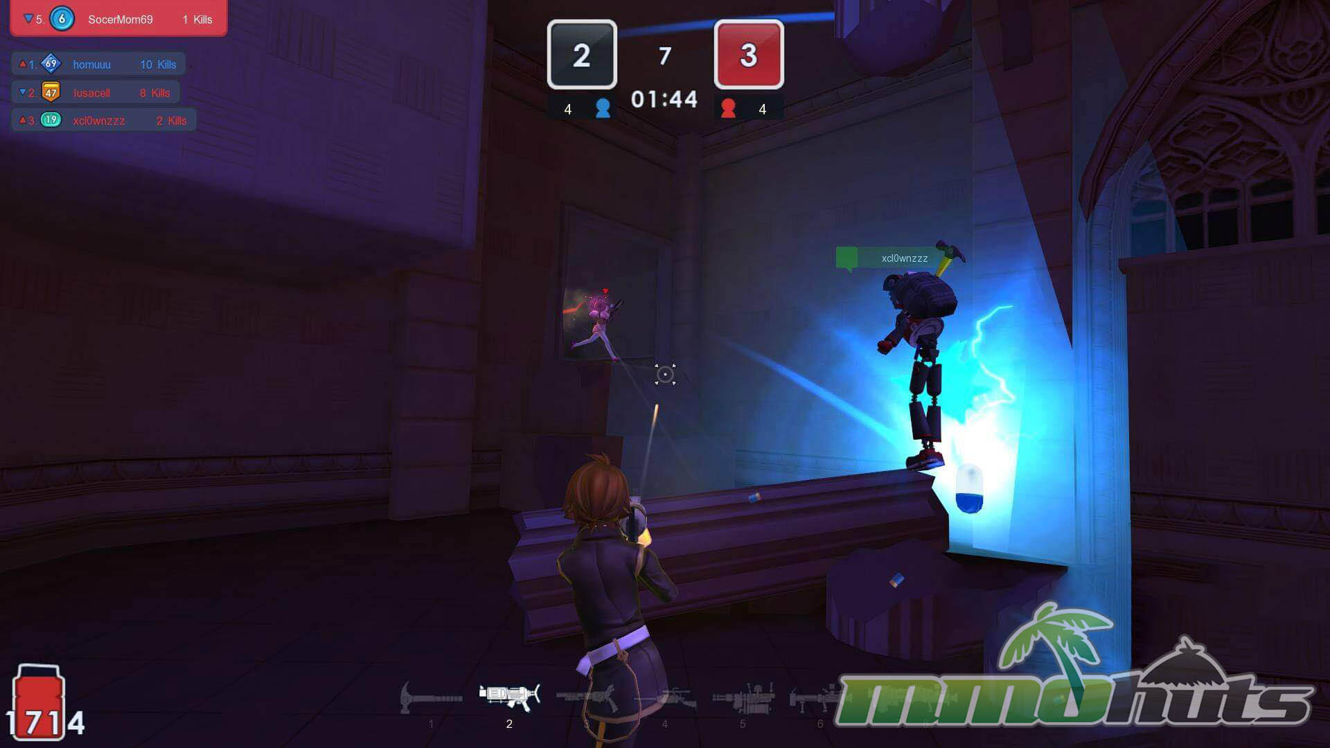 A major differentiator is how flexible the combat toolkit feels in-match. Rather than locking you into a single class loadout, MicroVolts revolves around seven primary weapon types that you can swap between as situations change. Long sightline ahead, shift to a sniper. Tight hallway fight, bring out a shotgun or melee. This constant swapping pushes a reactive playstyle and helps matches stay dynamic even when you are still learning the maps.