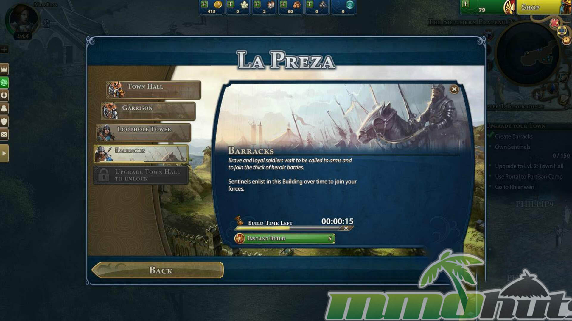 Your first settlement begins with the essentials already present, the Town Hall, Dwellings, and the Garrison. Later towns require more setup, which reinforces the sense of building an empire rather than simply upgrading a single base forever. The Town Hall is the main gatekeeper for development, it effectively sets the maximum level for other structures, and increasing it also opens more building slots and additional building types. It is also a steady source of gold, alongside income from mines.