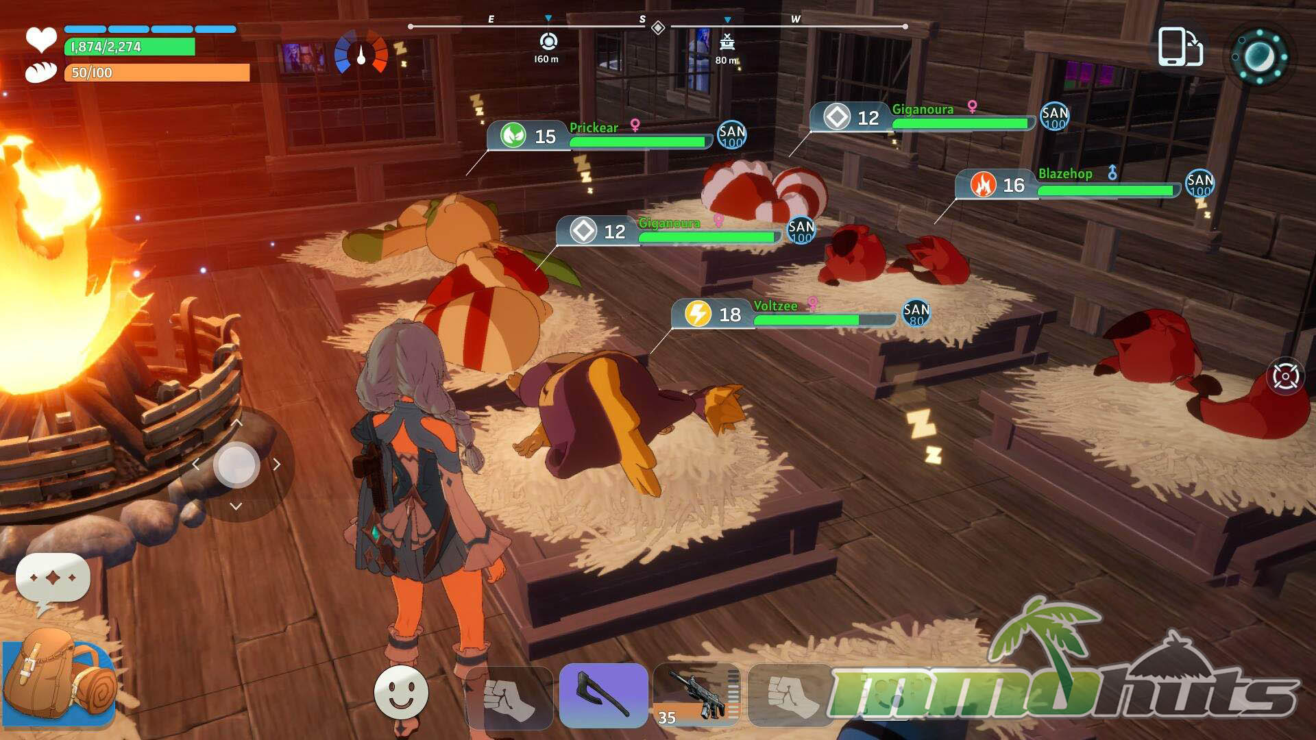 Miraibo GO wears its inspirations openly, but it also makes a clear effort to fit the creature-catching survival formula into a mobile-friendly, session-based format without losing the appeal of an explorable world. The early hours are driven by the usual survival priorities, gathering materials, setting up a functional base, and scouting for new Miras that can fill gaps in your lineup. Once you start building a small roster, the game’s rhythm settles into a loop of exploration, combat, and upgrading your camp through better tools and better creature labor.