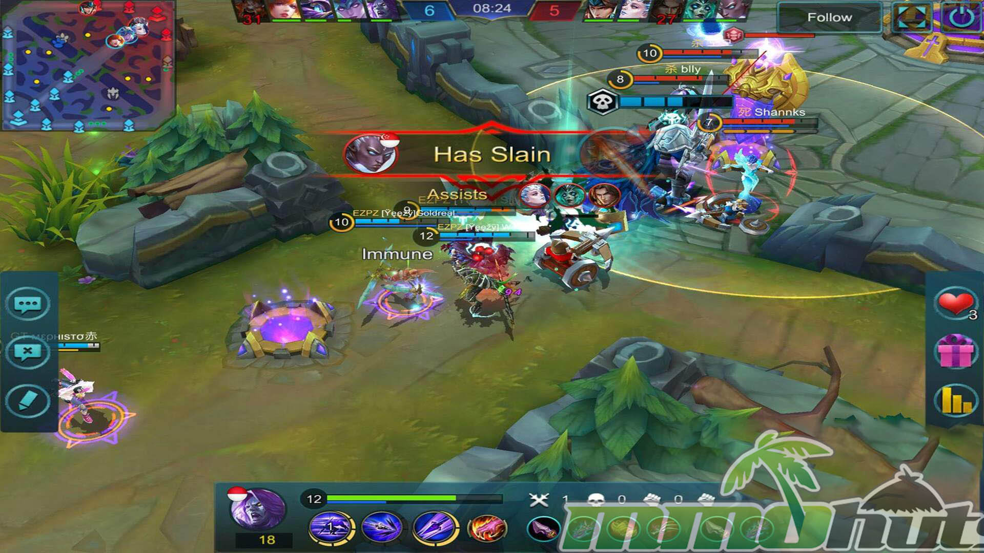 Where Mobile Legends differentiates itself is in how it streamlines the experience for mobile play. Movement is handled through a virtual joystick, while skills and basic attacks sit on the opposite side of the screen for fast access. The game also includes optional assistance tools, such as auto-aiming and other quality-of-life settings that make it easier to land abilities or handle timing-sensitive actions on a smaller display. This approach makes the game approachable for newcomers, though competitive players may prefer minimizing automation to keep full control over targeting and execution.