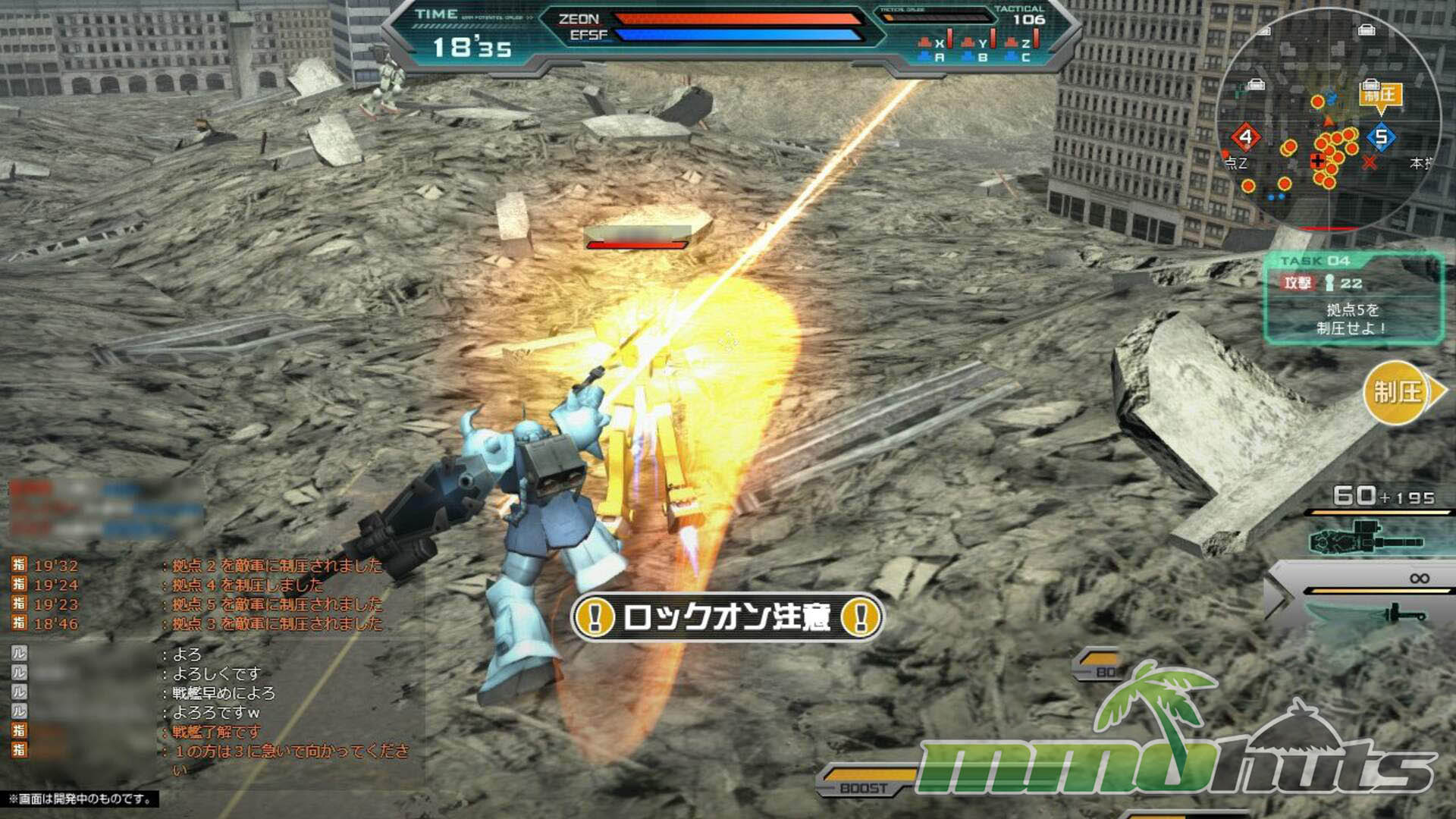 Mobile Suit Gundam Online is a Japan-only third-person shooter MMO set in the Gundam universe, built around huge team battles where players pilot iconic mobile suits on sprawling maps. Matches scale up to 52v52, and the flow of each battle is heavily influenced by a commander on both sides who issues objectives, calls tactics, and tries to coordinate dozens of pilots into something resembling an organized army rather than a chaotic skirmish.