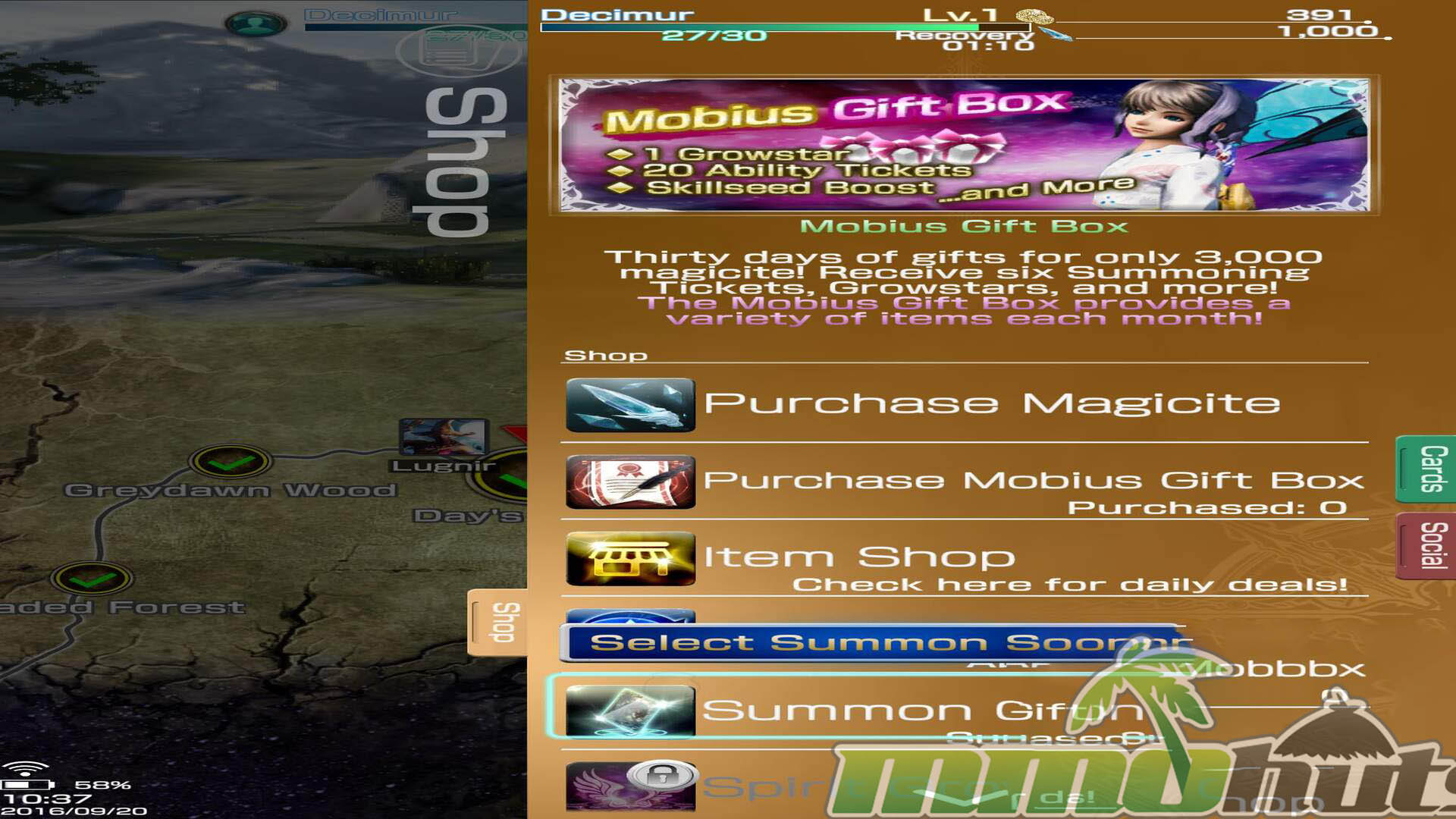 As a free-to-play title, Mobius Final Fantasy sells premium currency (Magicite), which can be exchanged for items, cards, and standard resources. The important point is that the game also hands out small amounts of Magicite on a timer (every 16 hours), giving dedicated free players a path to occasional premium purchases.
