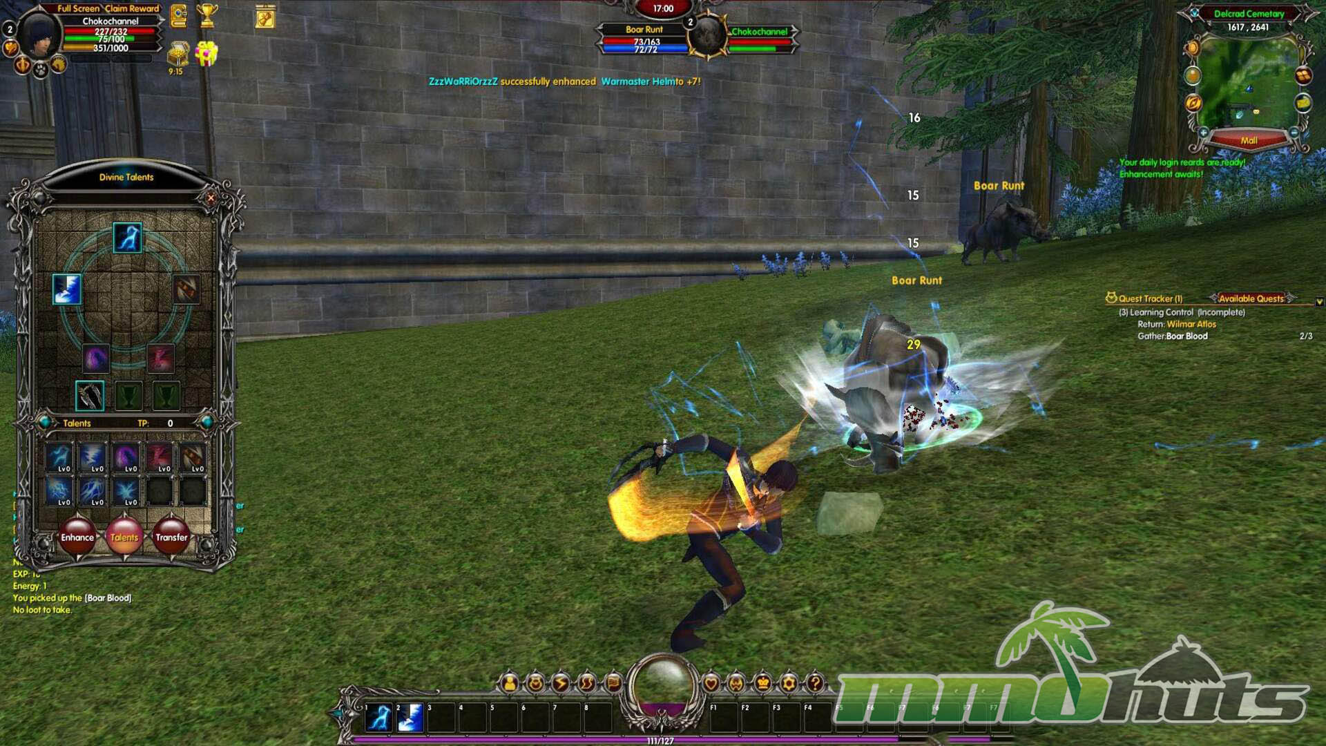 After a short introductory cutscene, the game gets moving quickly. Visually, Moonlight Online holds up better than many free titles from the same period, especially in its environment work and the way spells light up the battlefield. Unfortunately, the presentation is undermined by a crowded interface. Multiple notifications, numbers, and pop-ups compete for the center of the screen, and it is common for messages to appear and vanish before you can even register what they were trying to explain. The result is that the game’s better-looking moments are often obscured by UI noise.