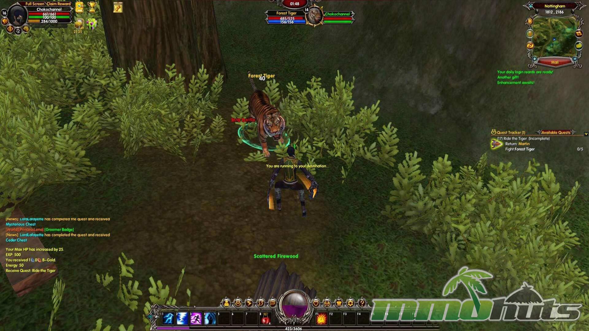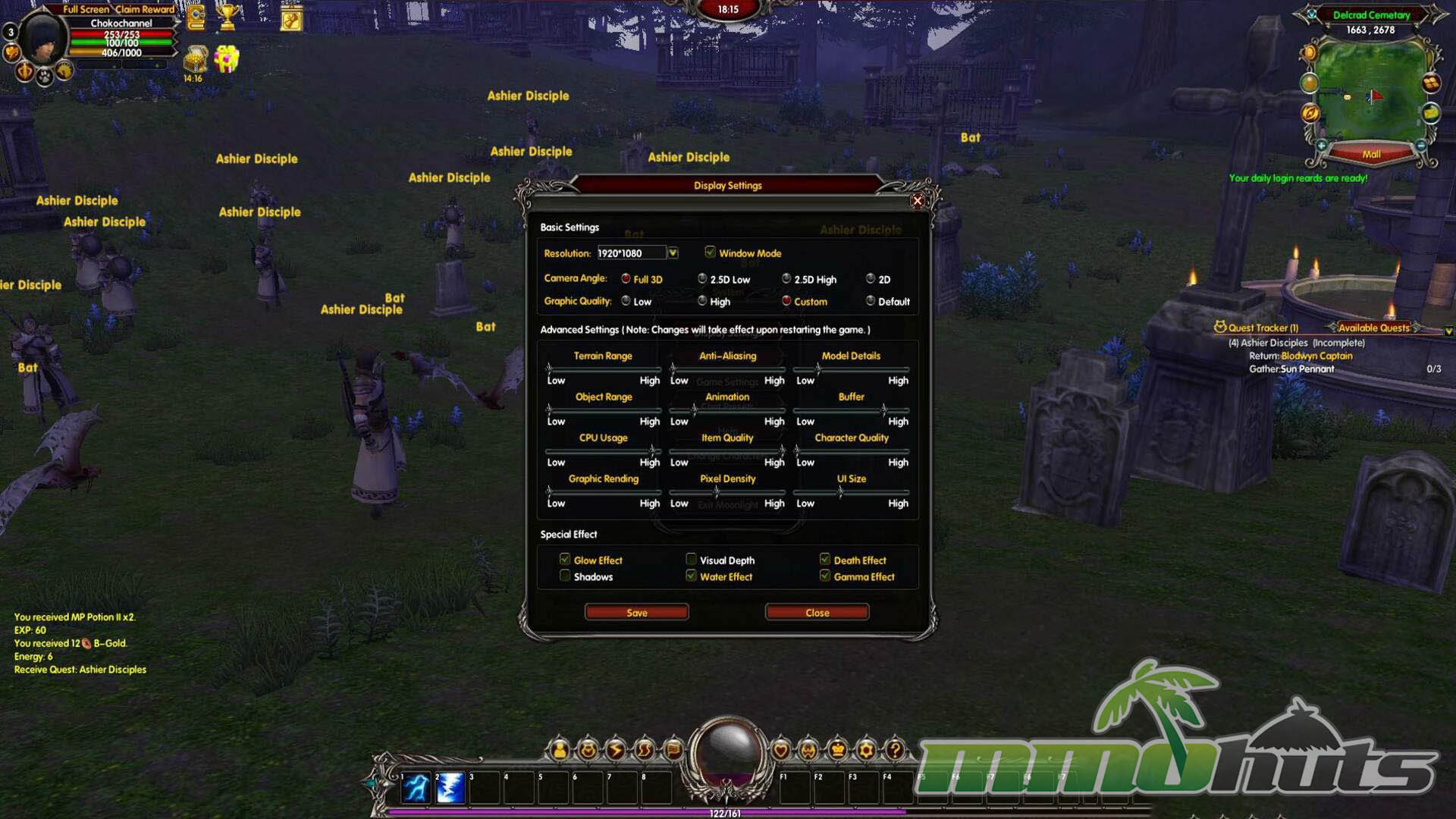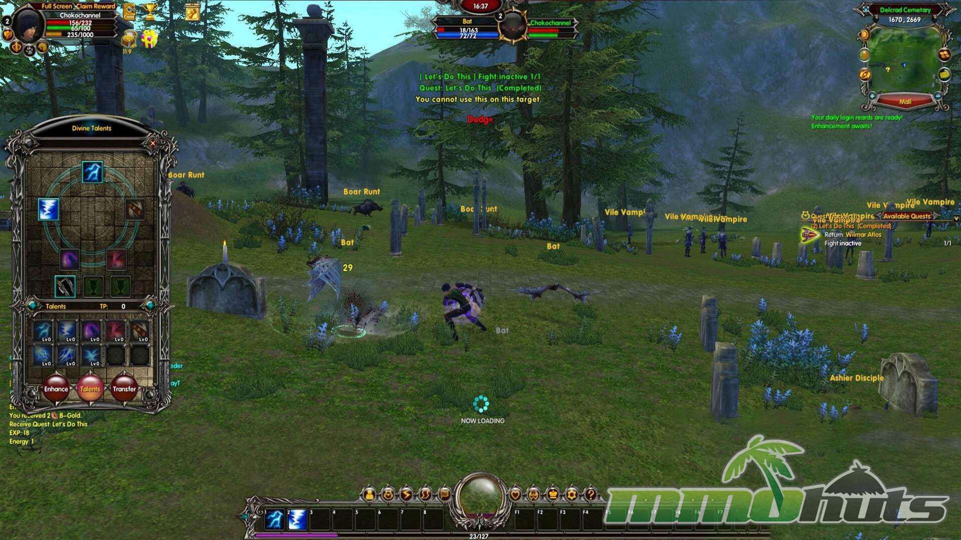 After a short introductory cutscene, the game gets moving quickly. Visually, Moonlight Online holds up better than many free titles from the same period, especially in its environment work and the way spells light up the battlefield. Unfortunately, the presentation is undermined by a crowded interface. Multiple notifications, numbers, and pop-ups compete for the center of the screen, and it is common for messages to appear and vanish before you can even register what they were trying to explain. The result is that the game’s better-looking moments are often obscured by UI noise.
