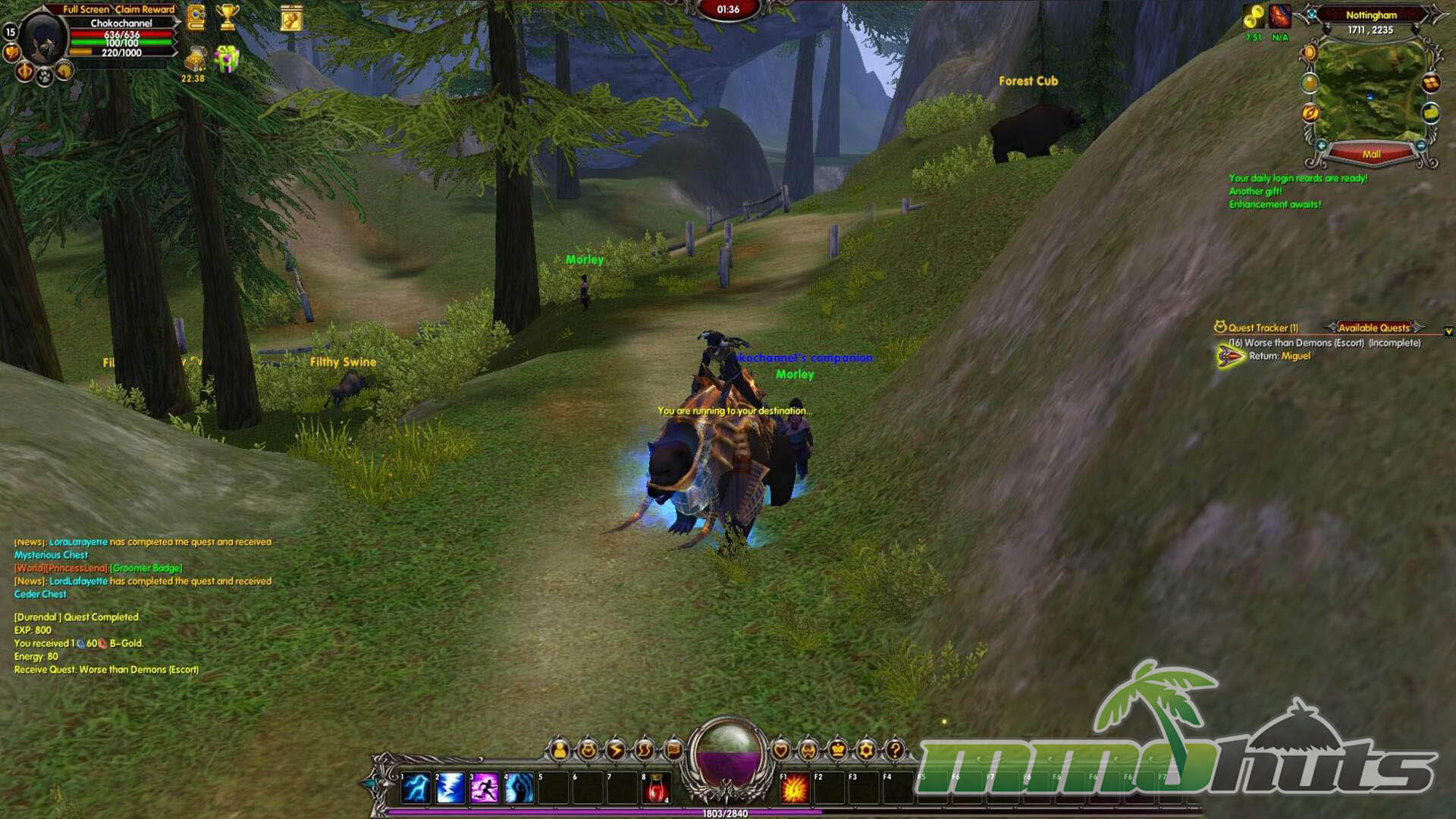 After a short introductory cutscene, the game gets moving quickly. Visually, Moonlight Online holds up better than many free titles from the same period, especially in its environment work and the way spells light up the battlefield. Unfortunately, the presentation is undermined by a crowded interface. Multiple notifications, numbers, and pop-ups compete for the center of the screen, and it is common for messages to appear and vanish before you can even register what they were trying to explain. The result is that the game’s better-looking moments are often obscured by UI noise.