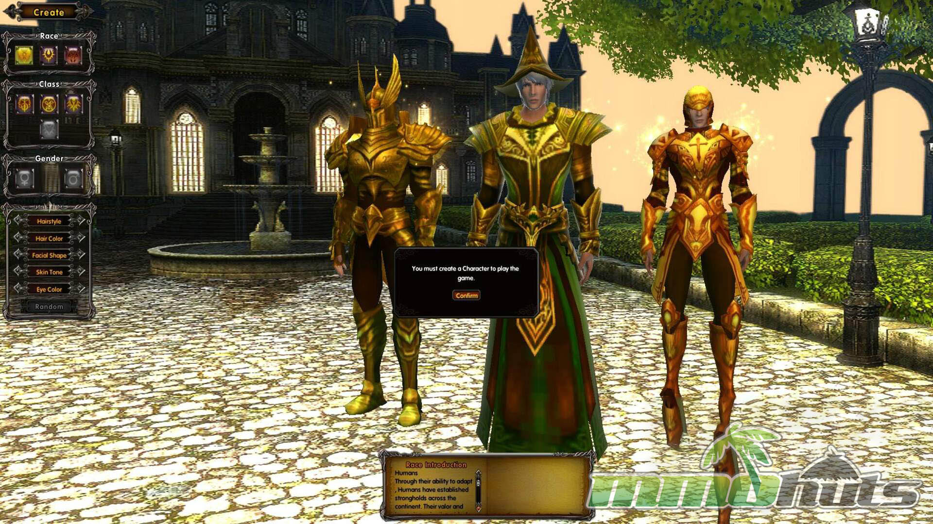 Character creation begins with race selection and then funnels you into the class list: Knights and Mages are available to everyone, Sages are exclusive to Humans, and Rogues are limited to Vampires and Werewolves. Race choice matters beyond aesthetics because racial skills play a real role later, and the game encourages you to treat them as part of your core toolkit rather than minor bonuses.