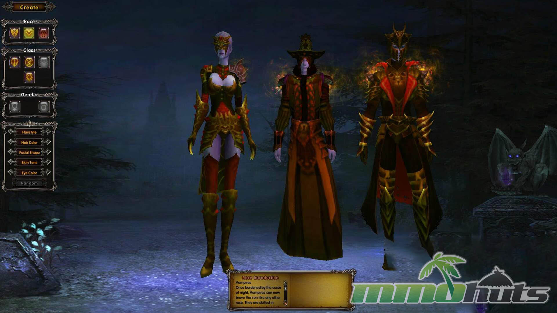 • Variety of Races and Classes – choose Human, Vampire, or Werewolf, then pick from class options tied to your race.