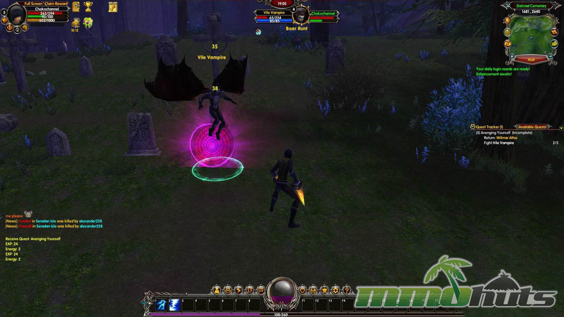 After a short introductory cutscene, the game gets moving quickly. Visually, Moonlight Online holds up better than many free titles from the same period, especially in its environment work and the way spells light up the battlefield. Unfortunately, the presentation is undermined by a crowded interface. Multiple notifications, numbers, and pop-ups compete for the center of the screen, and it is common for messages to appear and vanish before you can even register what they were trying to explain. The result is that the game’s better-looking moments are often obscured by UI noise.