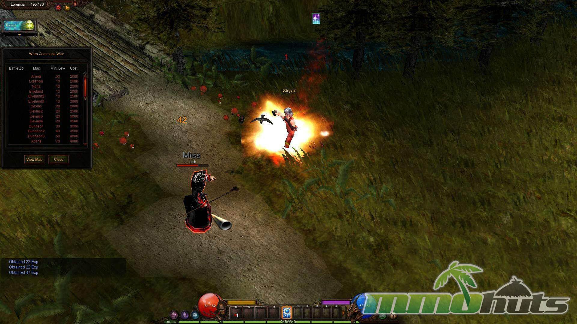 Moment-to-moment controls are simple: click-to-move, click-to-attack, and hotkeys (1 through 9) for skills. The simplicity is a strength, but the interface can feel dated and occasionally awkward, especially when you are first learning how to assign and manage abilities. Navigation also leans on the map (TAB) more than modern MMORPGs, since you will often be farming outside town and need to orient yourself quickly. Skills are not automatically granted, you buy them from trainers, which makes early progression feel like a steady drip of upgrades rather than an explosive ability unlock curve.