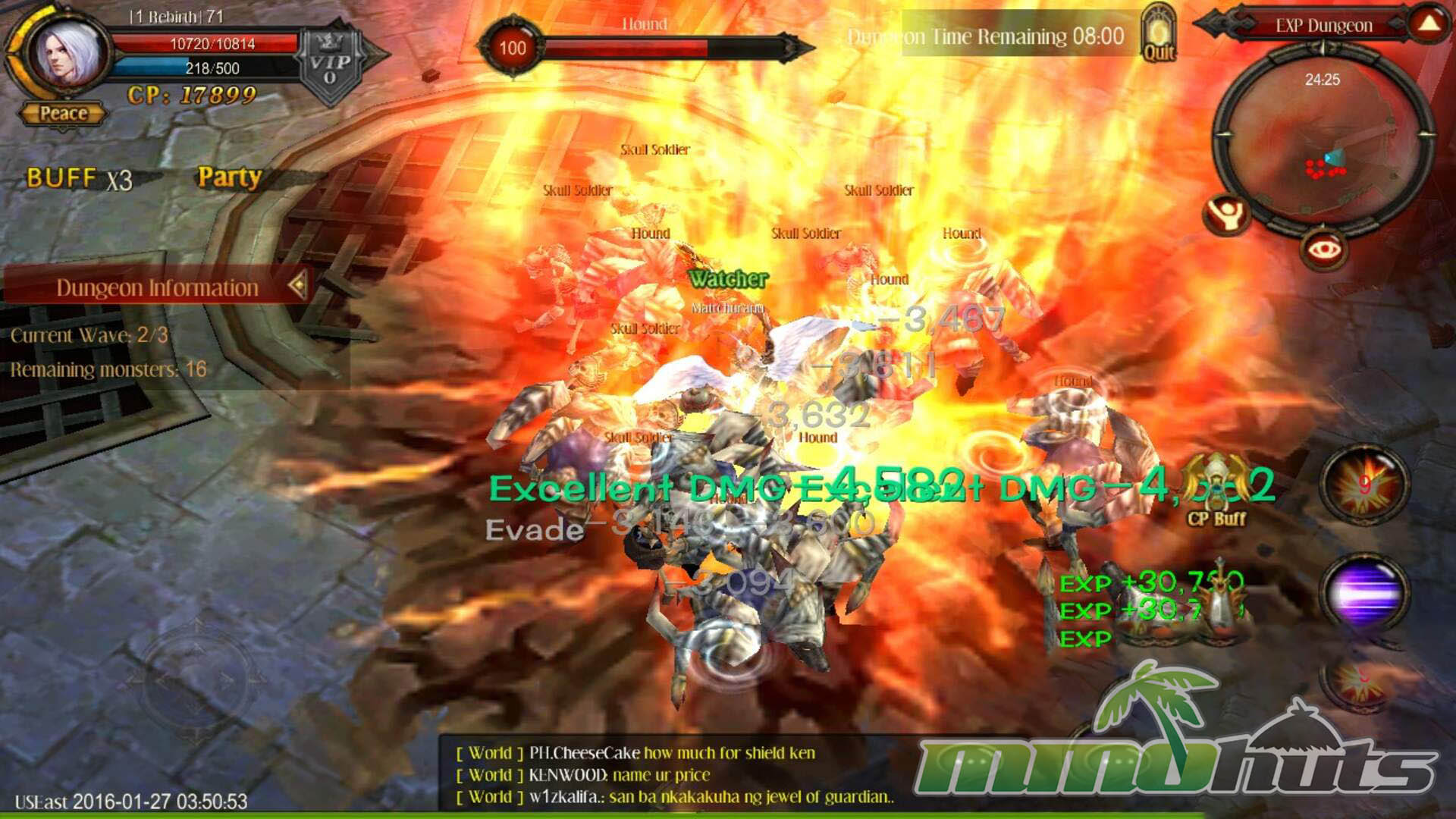 - Three classes – play as a Dark Knight, Dark Wizard, or Elf and use signature MU-style skills to clear waves of enemies.