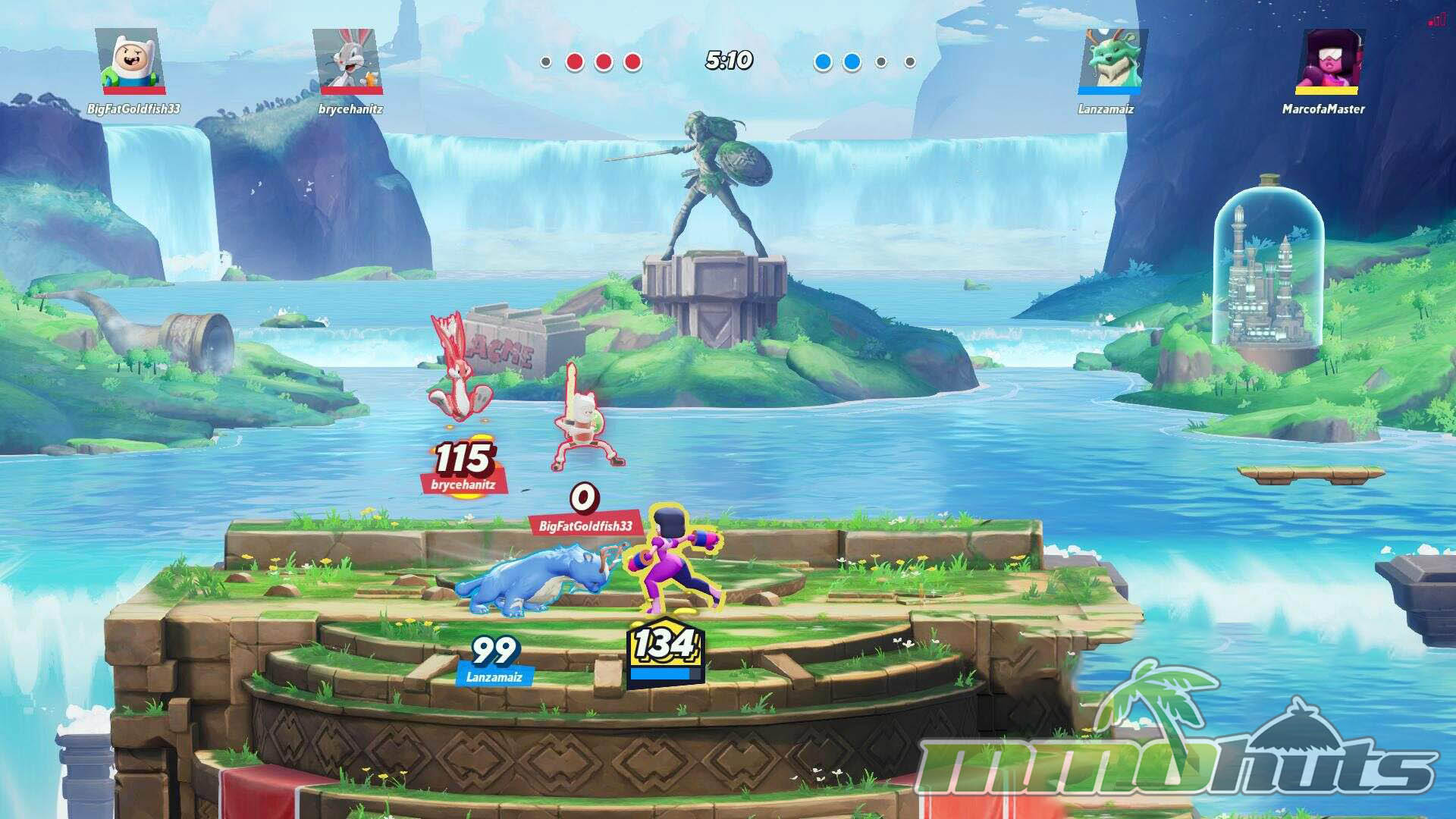 - Fast-Paced Brawler Combat – battle players or AI in quick 1v1, 2v2, or co-op vs AI matches across themed stages inspired by places like the Batcave, Themyscira, and Finn’s Treefort.