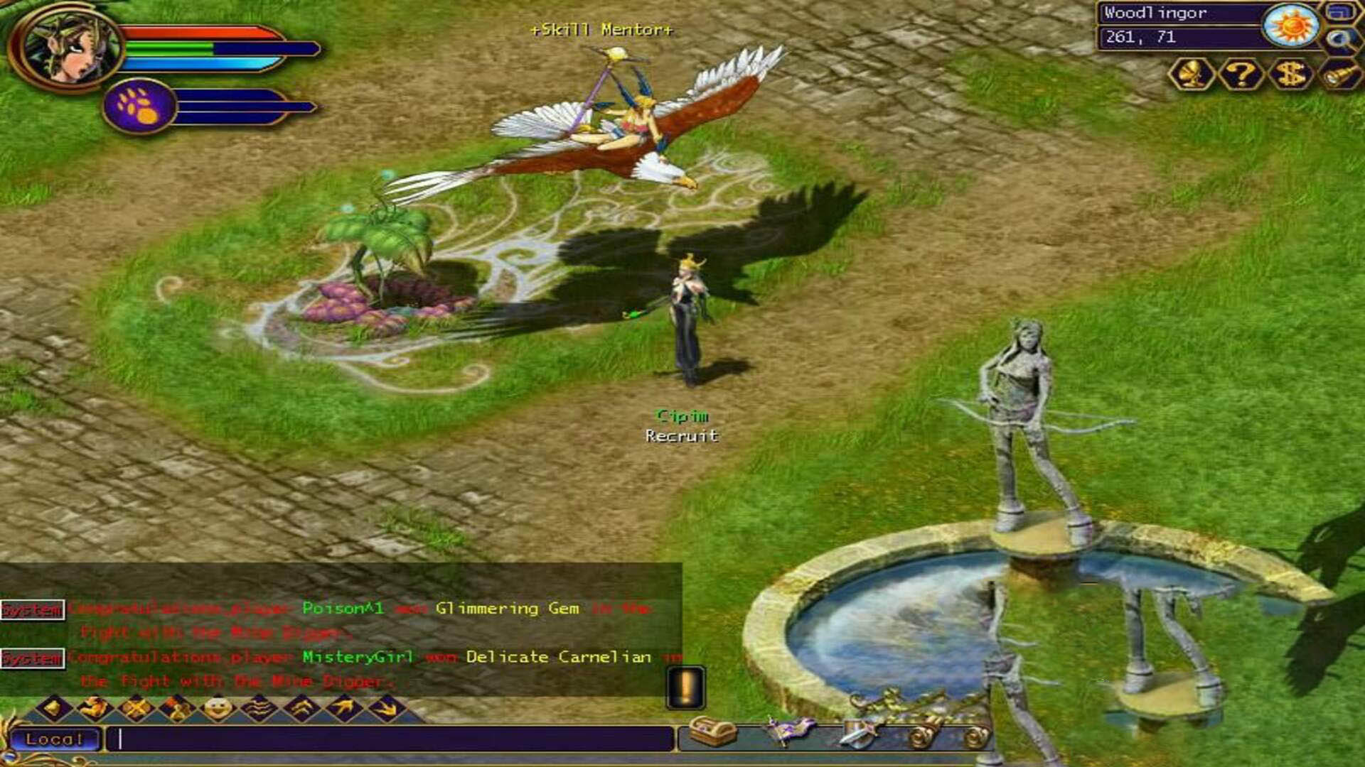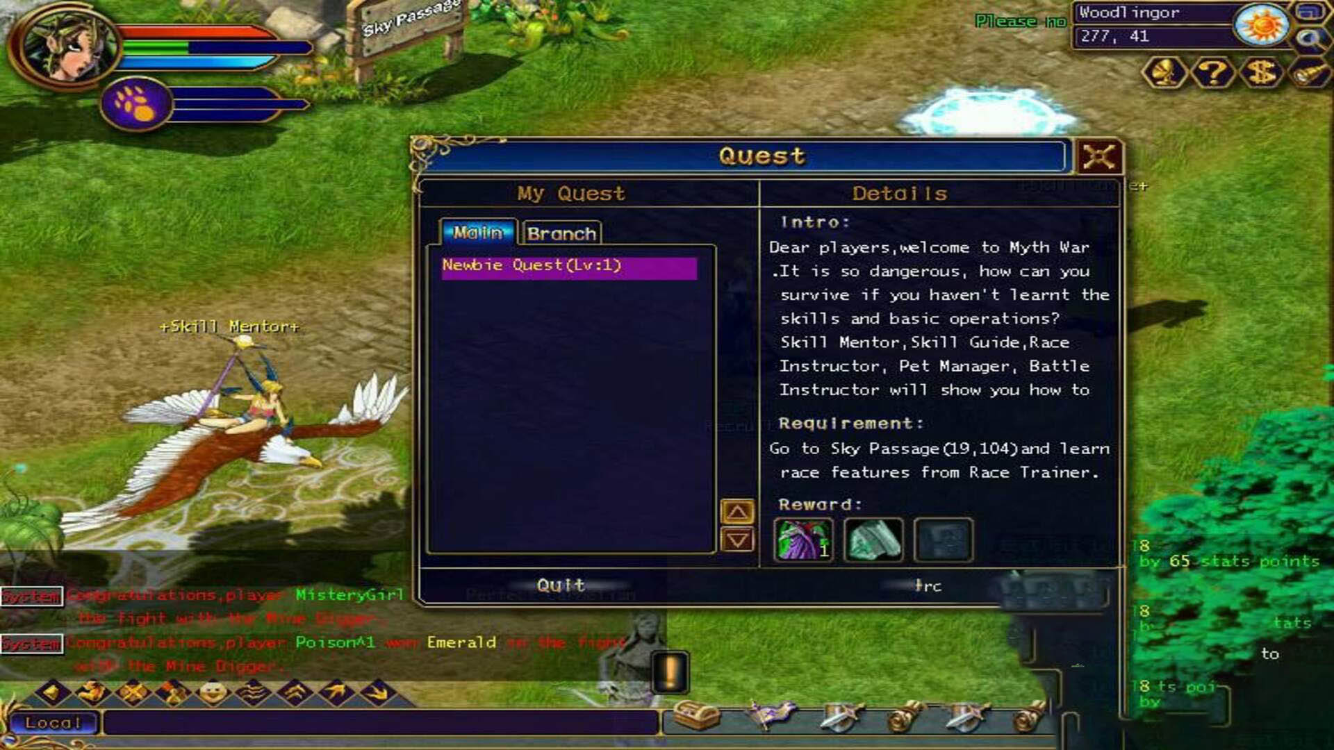 Veterans of the original will notice that the early-game flow has been simplified. Instead of dragging players through a long, convoluted tutorial structure, Myth War 2 pushes you through a more compact starting area with clearer prompts and nearby NPCs. The map is easy to read, and the game provides coordinates to reduce aimless wandering. Early quests hand out skill points that can be invested into your starting abilities, with higher skill levels requiring more points. For new players, focusing on one reliable offensive skill early tends to be the most efficient approach.