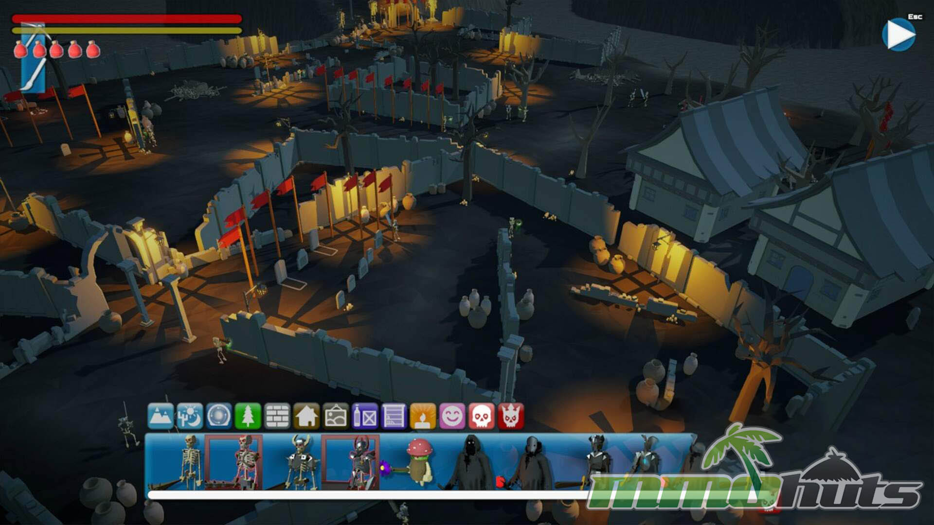 World building leans into speed and approachability. With 9 themes available, you can set a clear visual identity quickly, then populate the area with an expanding catalog of objects and encounters, ranging from simple creatures to dungeon-like set pieces and boss fights. The “hub” approach keeps your tools and world management in one place, which helps when you are iterating on a level and testing it frequently.