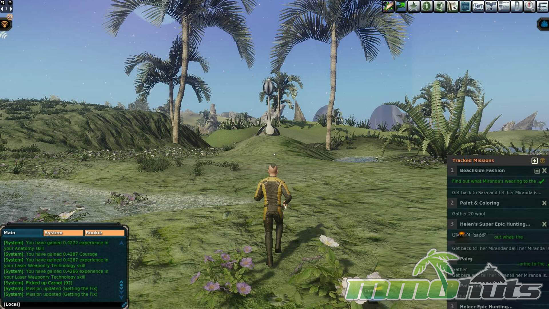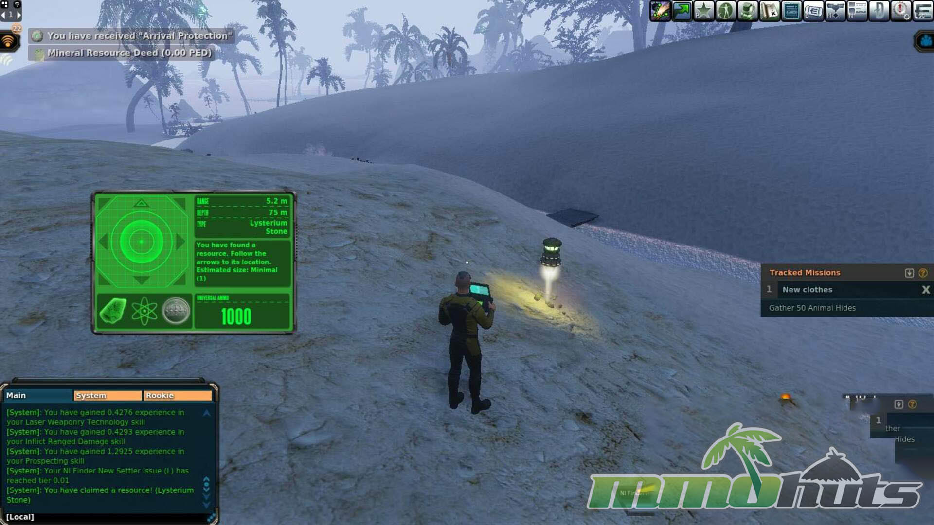 That economic focus is also where the game can feel harsh. Compared to conventional MMORPGs where early quests shower you with starter gear and currency, Next Island is deliberately stingy. One of the first “honest work” activities is collecting sweat from wildlife, because sweat functions as a valuable commodity in Entropia. In the opening hours, sweating can easily become your main source of income, and it is slow, repetitive, and not especially exciting. Quest rewards can also feel underwhelming relative to the time and resources spent, which makes the first stretch of play a test of patience.