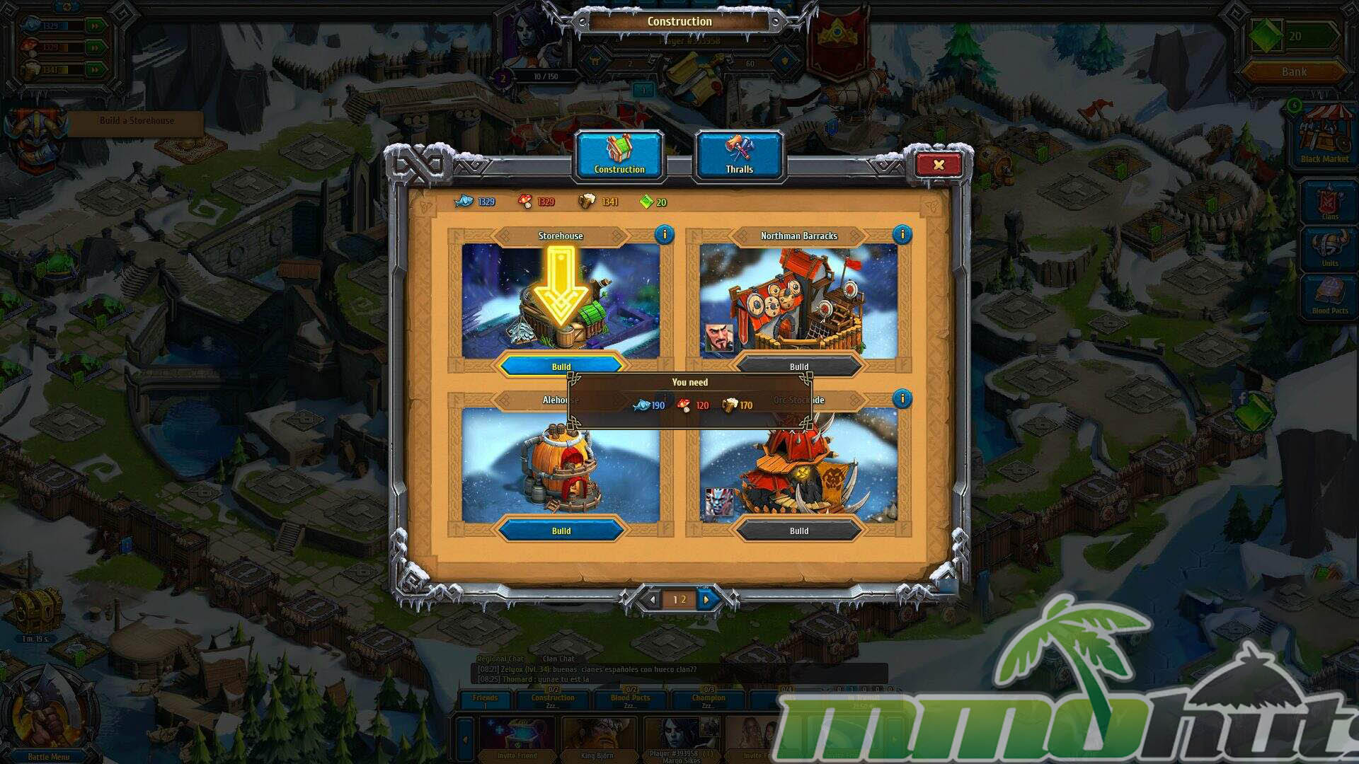 Like most browser war games, Nords lives and dies by its economy. Your day-to-day actions are funded by three primary resources: Mushrooms, Fish, and Fire Ale. These come from Mushroom Patches, Fisherman’s Huts, and Fire Ale Breweries, and they are spent on the major pillars of progression, training units, signing Blood Pacts, and constructing or upgrading structures.