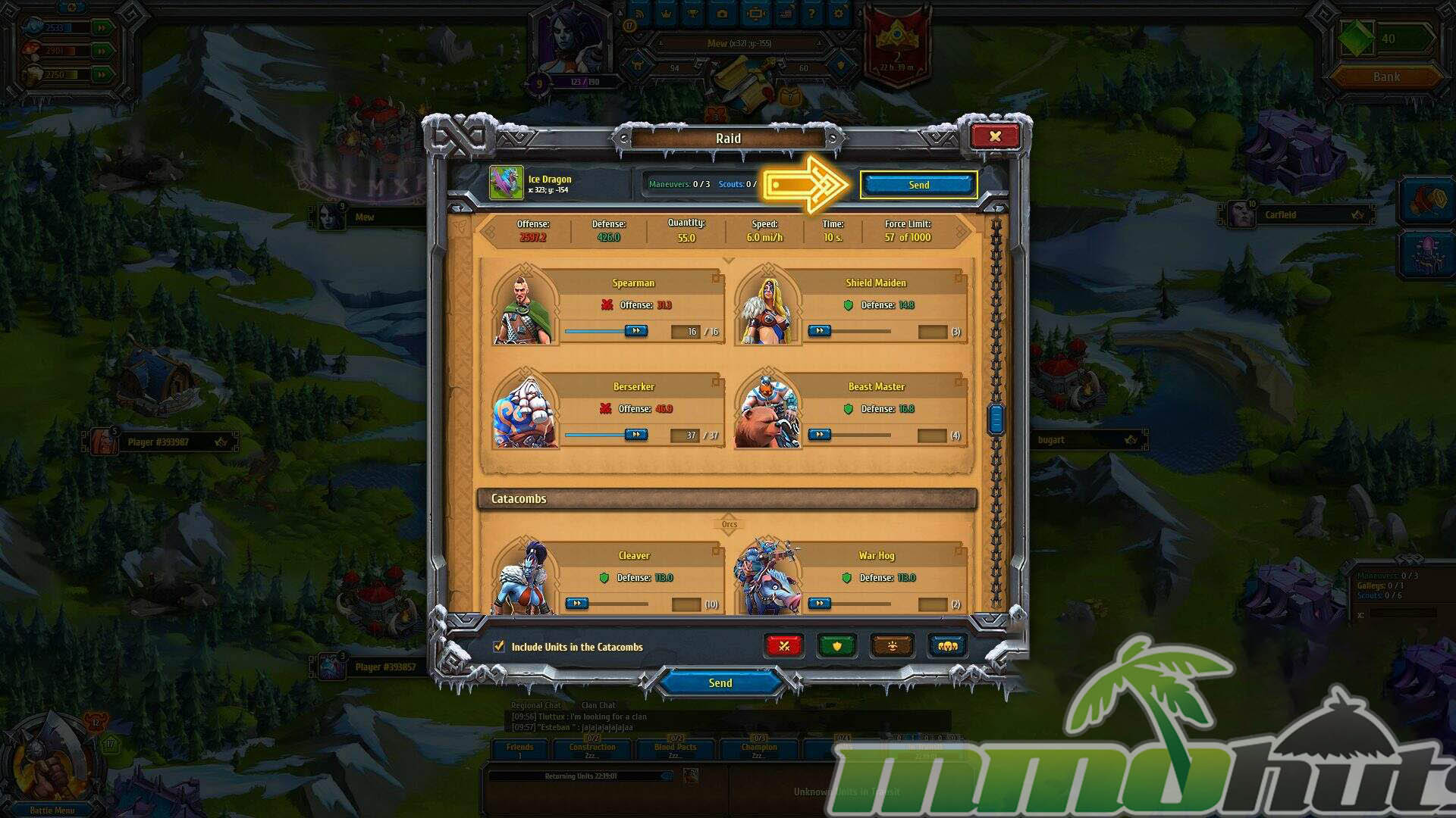 Along the way you are introduced to the basics of PvE and safety systems: fighting monsters, tucking troops and valuables away in the Catacombs, and learning how premium currency and the cash shop fit into the overall economy. Before long, the tutorial also prepares you for the reality of the game’s competitive side by showing you scouting and raiding, since resource theft and retaliation are central to how Nords creates tension between neighbors.