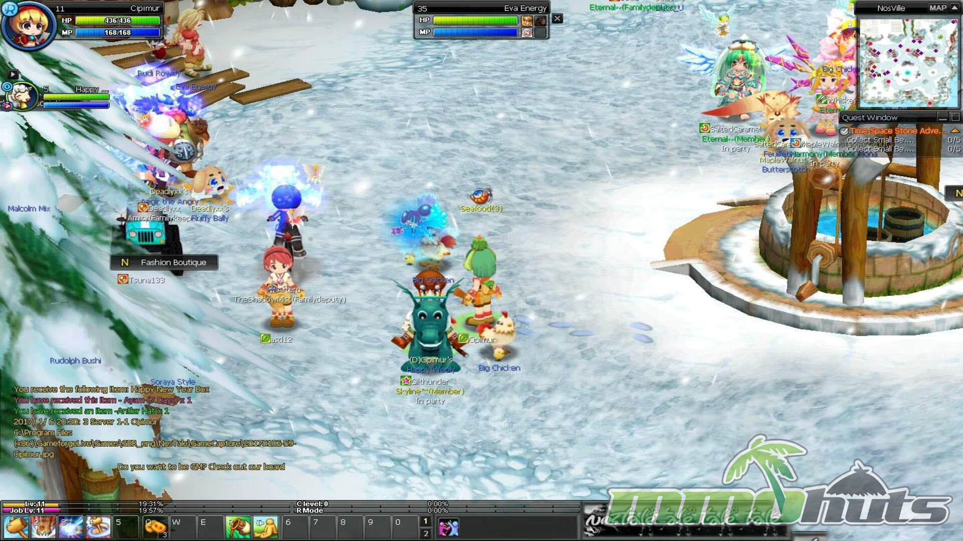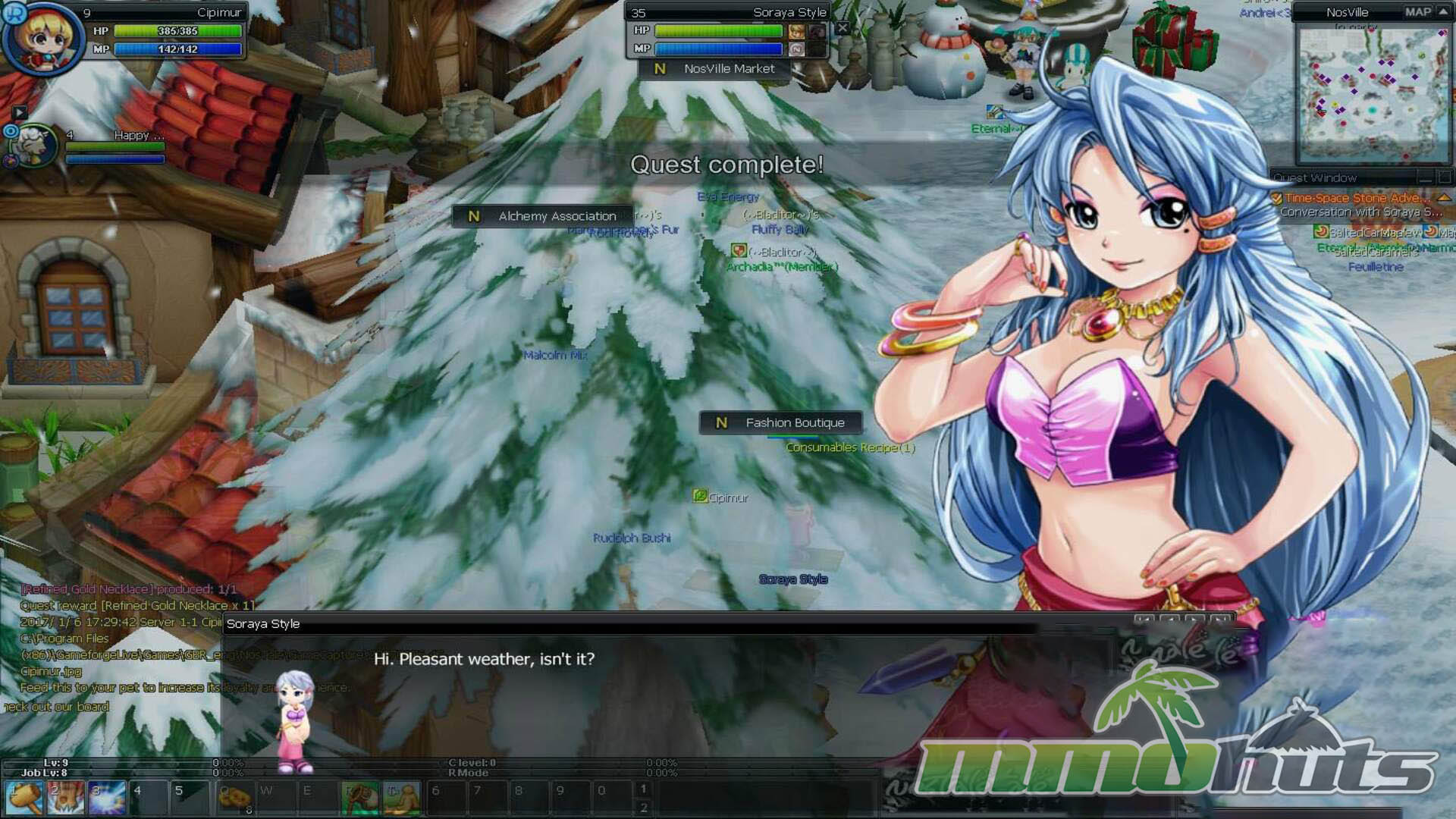 The structure is built around questing, overworld grinding, and instanced challenges. Time-space stones (crystal worlds) act as timed missions with completion rewards, while raids and periodic events encourage grouping. Between combat activities, the game leans into collection and customization through pets and NosMates, companions you can bring into fights or keep at home in Miniland, your personal instance that doubles as storage and a small social space.