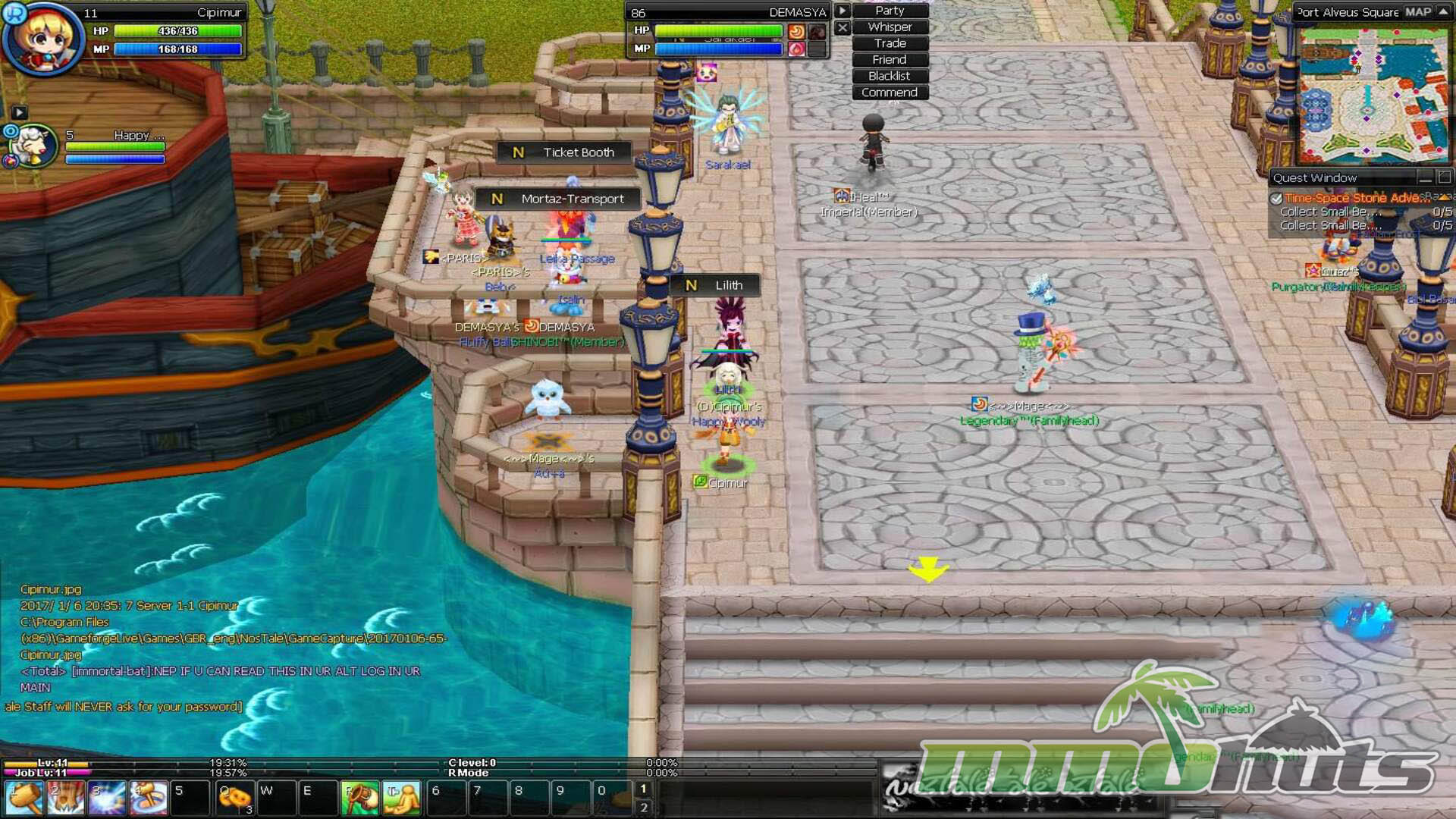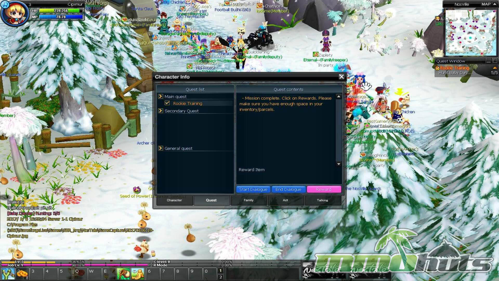 The structure is built around questing, overworld grinding, and instanced challenges. Time-space stones (crystal worlds) act as timed missions with completion rewards, while raids and periodic events encourage grouping. Between combat activities, the game leans into collection and customization through pets and NosMates, companions you can bring into fights or keep at home in Miniland, your personal instance that doubles as storage and a small social space.