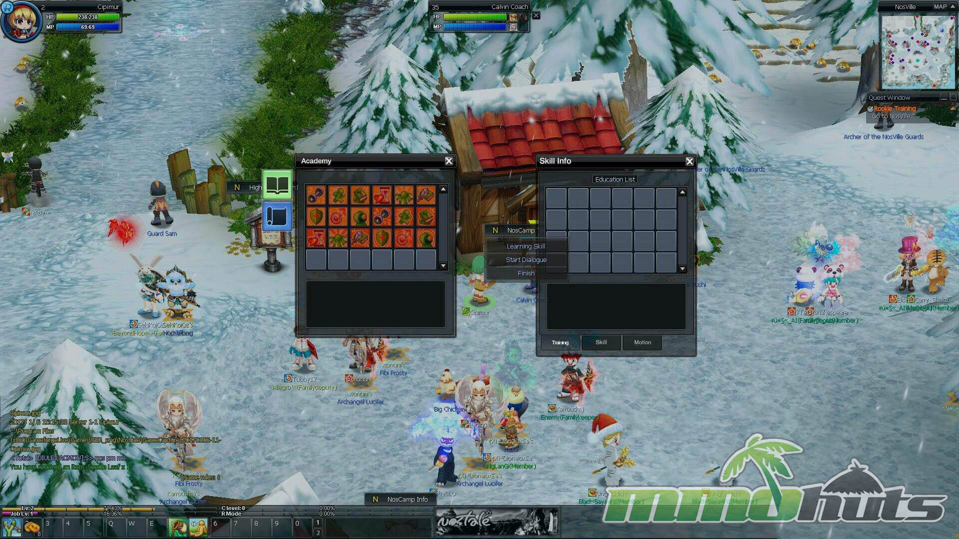 Pets can be leveled and trained, and they are not purely cosmetic. They can learn skills and contribute in fights, but they also come with upkeep expectations, such as feeding and maintaining loyalty, or they may stop cooperating. Alongside pets, you can also recruit a NosMate, essentially an NPC mercenary companion. NosMates can level, can be equipped with gear, and can be configured with simple behaviors like following and defending, or controlled more directly when needed. Early on you will mostly see modest creatures (farm animals and small critters), but the system is clearly built to keep scaling as you progress into higher-level areas.