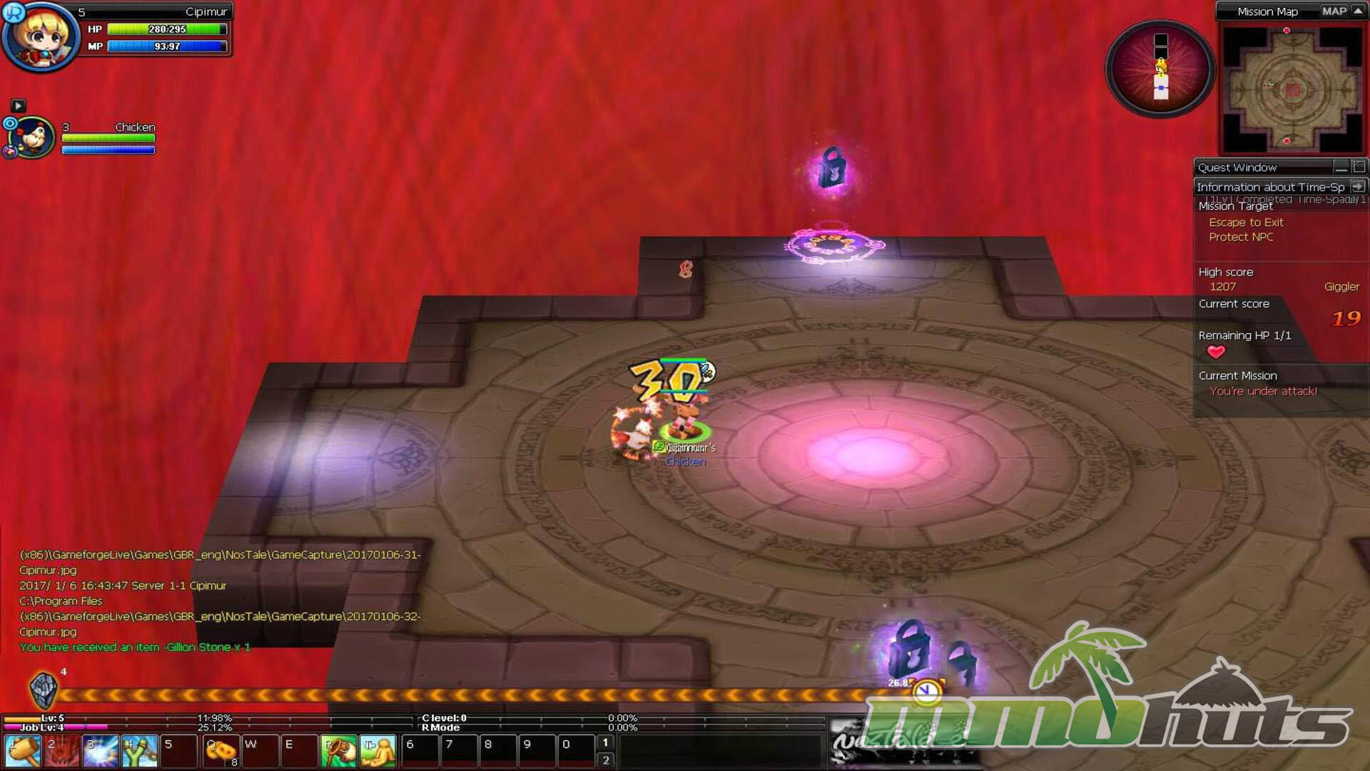 The structure is built around questing, overworld grinding, and instanced challenges. Time-space stones (crystal worlds) act as timed missions with completion rewards, while raids and periodic events encourage grouping. Between combat activities, the game leans into collection and customization through pets and NosMates, companions you can bring into fights or keep at home in Miniland, your personal instance that doubles as storage and a small social space.