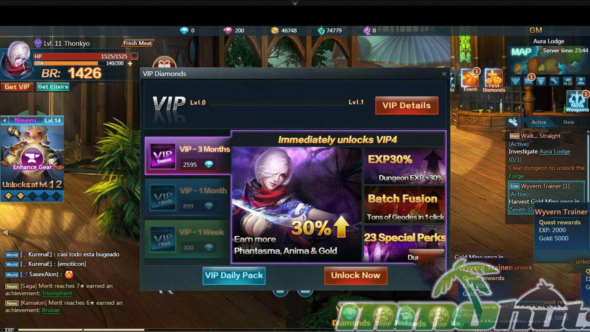 Diamonds serve as the premium currency and are obtained through real-money purchases. The game can be played without spending, but Diamonds reduce friction by letting you buy cash shop items, including gear and convenience options that speed up cooldowns and progression. As with many free-to-play browser MMORPGs, the store is positioned as a way to accelerate rather than a strict requirement to participate.