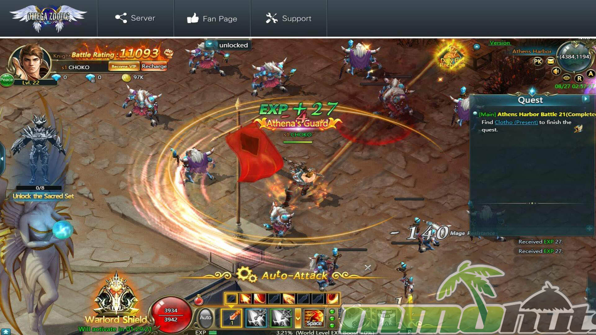 Omega Zodiac is a free-to-play browser MMORPG built around helping the goddess Athena push back an encroaching darkness. Players pick one of three combat roles, Mage, Knight, or Archer, then level through quests and monster hunting while constantly upgrading equipment. The game leans heavily into loot progression and flashy skill chains, with PvP and guild activities providing the competitive endgame.