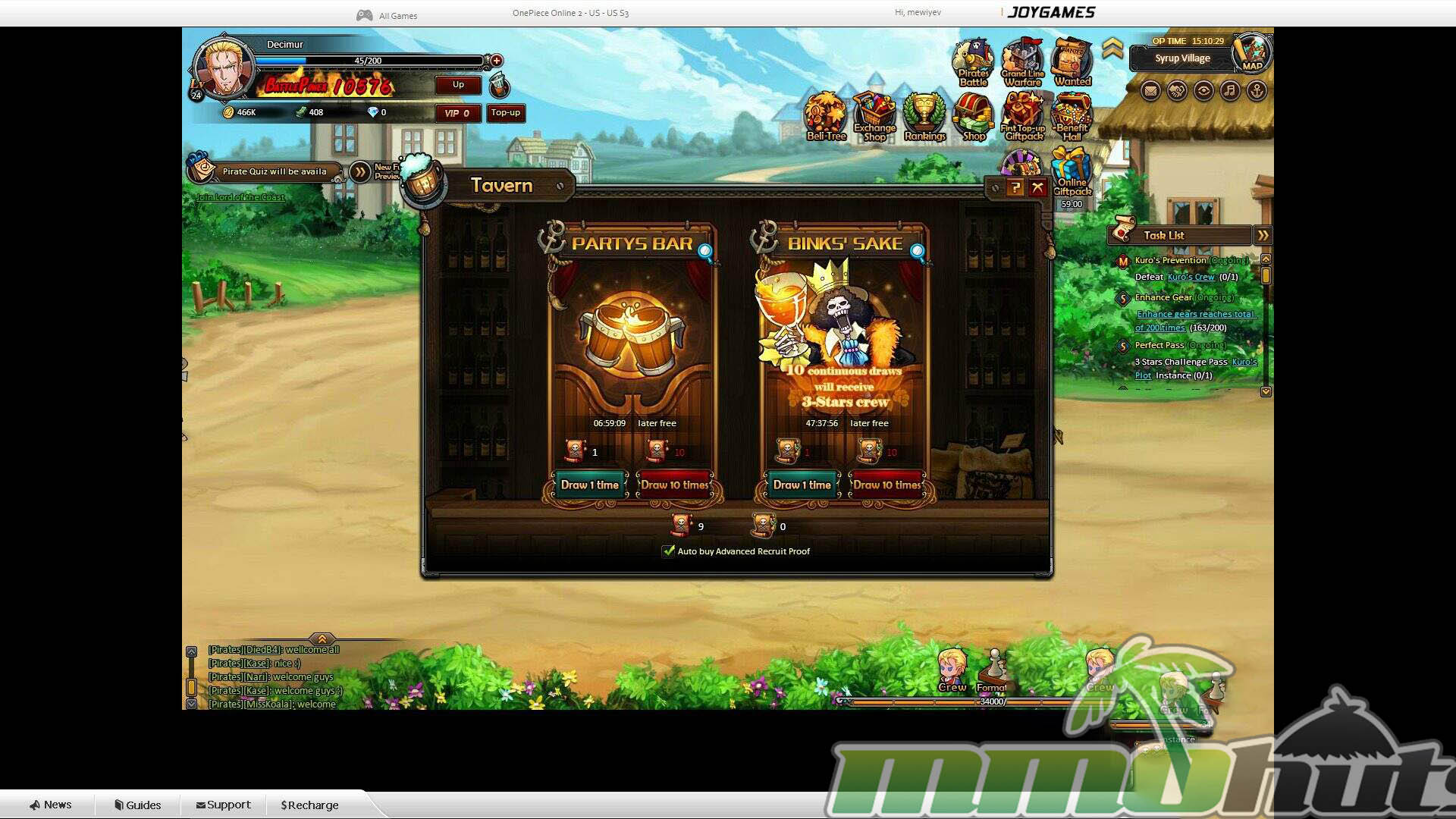 One Piece Online 2 fits neatly into the browser MMO niche built around party management, collectible heroes, and semi-automated combat. It is less about hands-on action and more about building a roster, arranging synergies, and steadily increasing power through upgrades and recruitment. If you have played other anime-themed browser titles in a similar style, the overall cadence will feel familiar, with story quests acting as the spine and side modes serving as the daily routine.