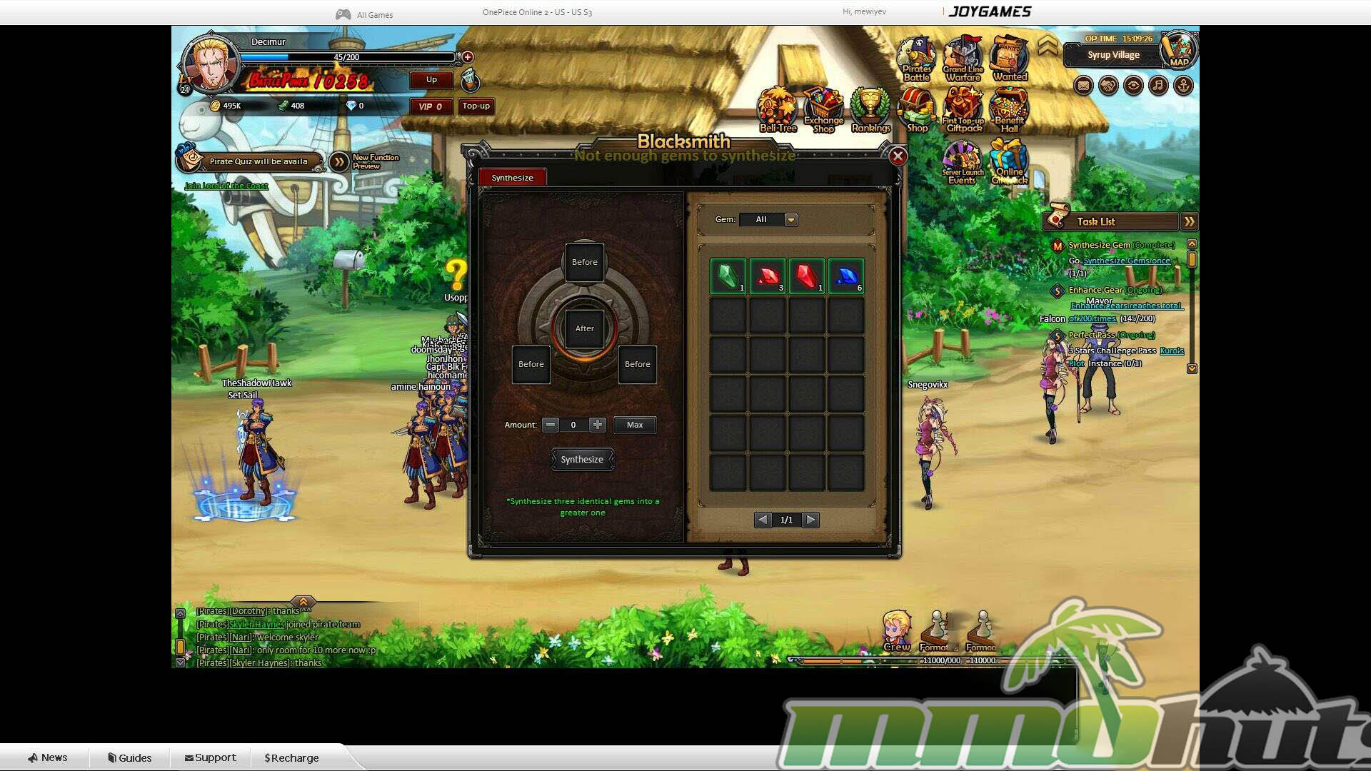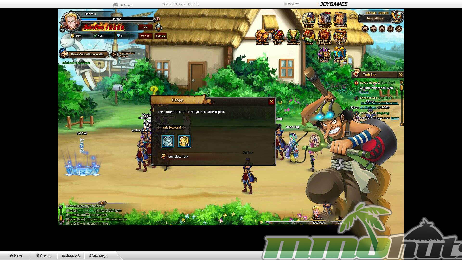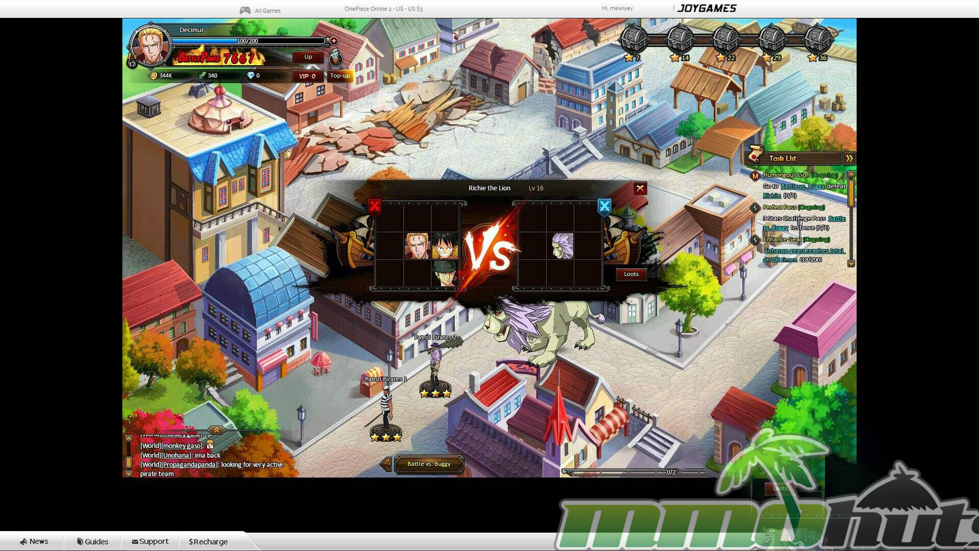 | Publisher: JoyGames Playerbase: Medium Type: Browser MMORPG PvP: Arena Release Date: September 25, 2015 Pros: +Faithful One Piece flavor and characters. +Wide spread of skills across classes and recruits. Cons: -Monetization can heavily influence power. -Questing and fights can feel samey over time. |
