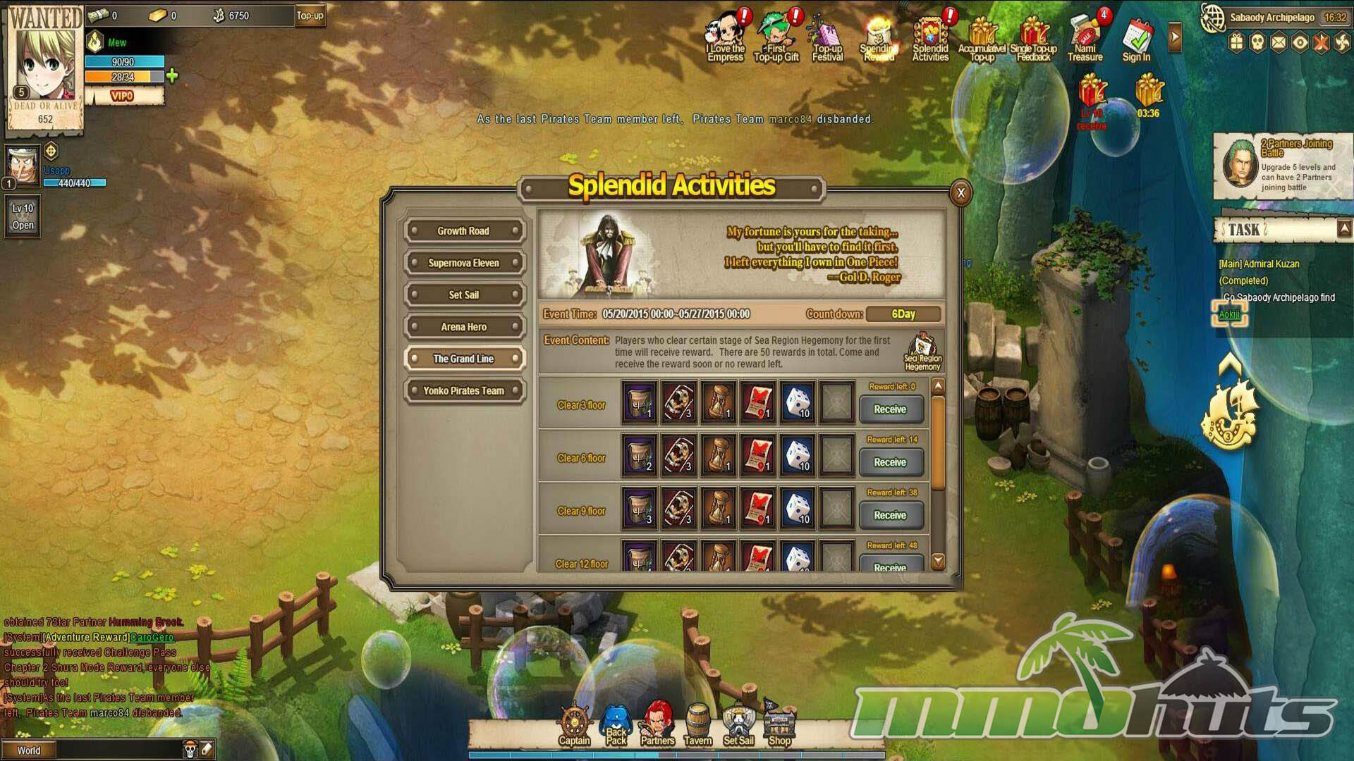 Despite the obvious One Piece influence, this is not a licensed adaptation. In practice, it feels closer to the wave of anime-themed browser MMOs that reuse familiar UI layouts, progression loops, and monetization patterns, then swap in a different coat of paint. The setting is presented as a One Piece style pirate hub (visually reminiscent of places like Sabaody), and the narrative pulls in recognizable names and motivations, but it is more of a loose mashup than a coherent retelling.