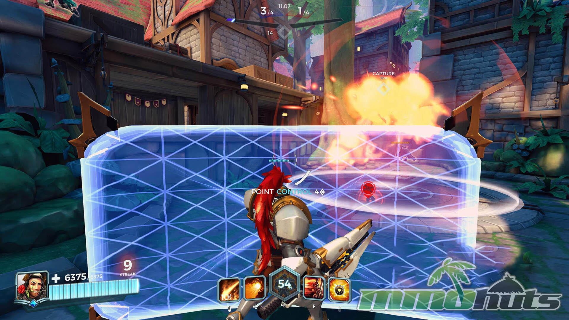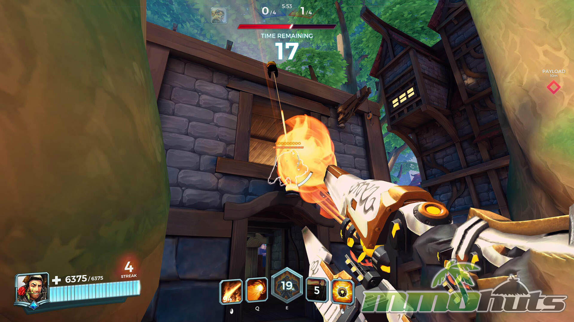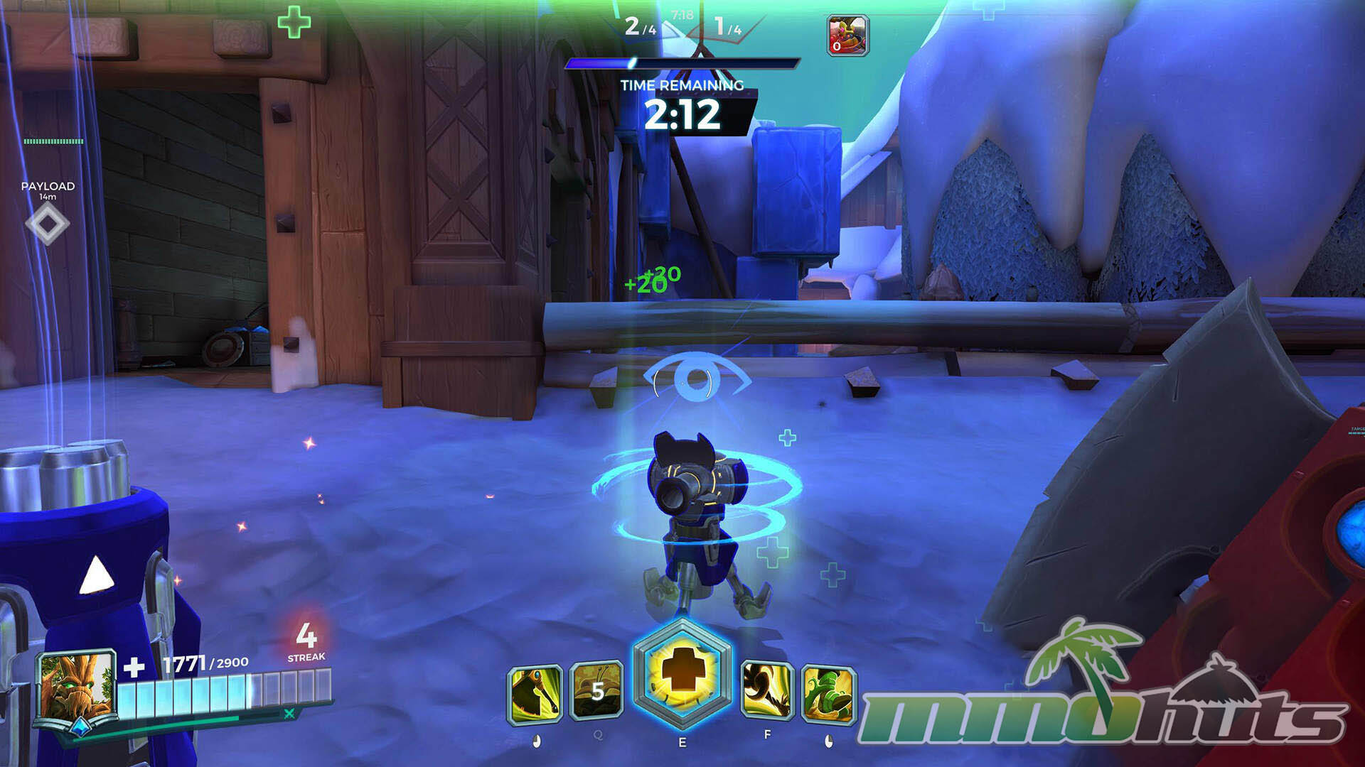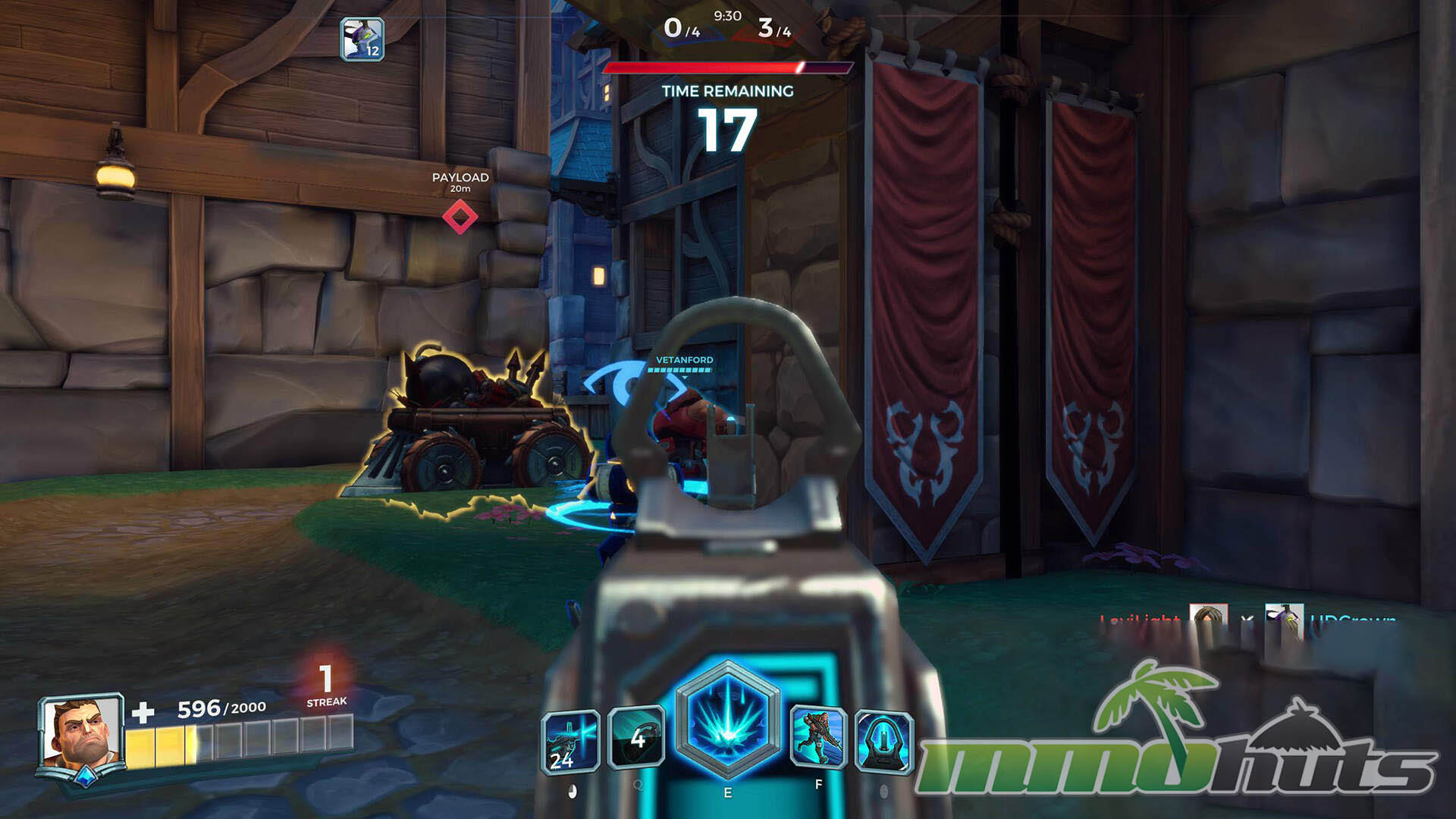 The match loop is clear and consistent. Two teams spawn on opposite sides, contest a capture objective, then the winning team attempts to escort a payload while the defenders try to stop it. Capturing the point awards progress toward victory, and a successful escort adds more, with the first team to 4 points winning the game. Because phases alternate between a concentrated fight on the point and a moving front line around the payload, momentum swings are common and comebacks feel possible.