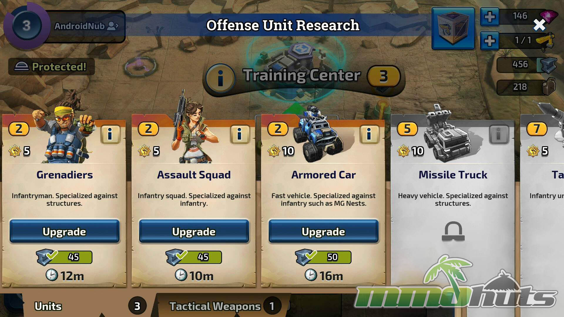 Path of War offers a respectable amount to unlock, and this is one of its stronger long-term hooks. Troops are split into infantry, vehicles, and aircraft, and they are designed with rock-paper-scissors style roles in mind, with certain units performing better against specific target types such as structures or other troop categories. Unlocking new options is tied to clearing key milestones, including tougher Veteran Bases that function like periodic skill checks.