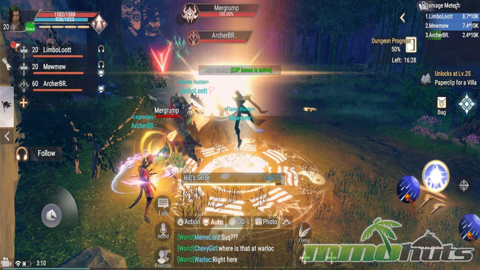 Progression largely follows traditional mobile MMO pacing: you move through story and side quests, unlock new activities, and queue into instanced content as you level. PvE includes solo-friendly tasks and group dungeons that reward coordination, while PvP provides competitive outlets for players who want to test builds and reflexes. Combat is action-leaning for a mobile title, built around positioning and skill usage, and it supports both hands-on play and automated controls for players who prefer a more relaxed approach.