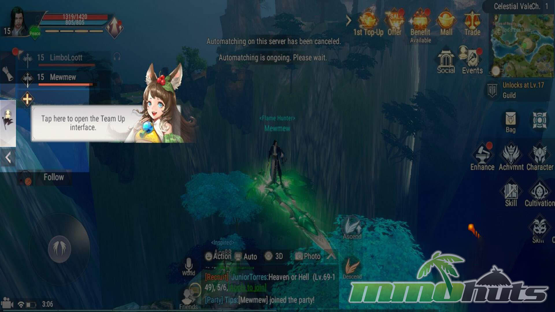 Progression largely follows traditional mobile MMO pacing: you move through story and side quests, unlock new activities, and queue into instanced content as you level. PvE includes solo-friendly tasks and group dungeons that reward coordination, while PvP provides competitive outlets for players who want to test builds and reflexes. Combat is action-leaning for a mobile title, built around positioning and skill usage, and it supports both hands-on play and automated controls for players who prefer a more relaxed approach.