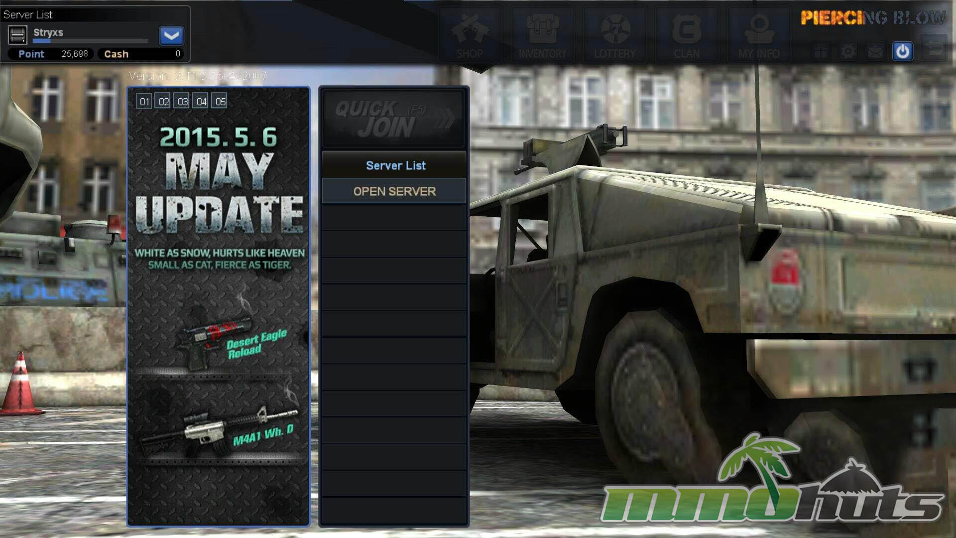Piercing Blow is another Korean-made online FPS built around compact sessions, quick matchmaking, and a familiar buy-and-loadout loop that fans of titles like Combat Arms and Blackshot will recognize. You jump into rounds from a lobby, earn points for your performance, then spend those points in the in-game shop on weapons and gear to shape your preferred playstyle.