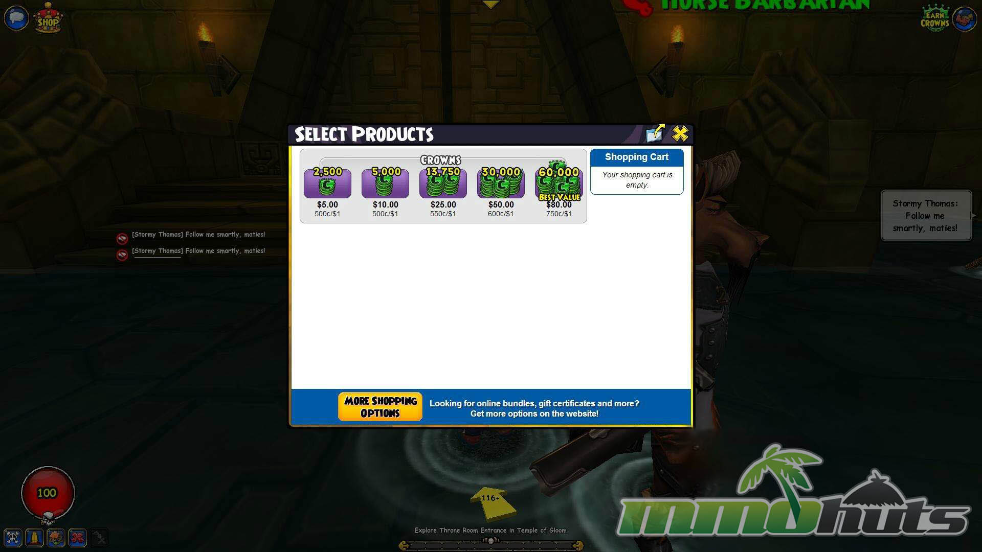 Pirate101 uses a model that will be familiar to anyone who has played Wizard101. The story is broken into chapters, and many of those chapters require Crowns to unlock. The key advantage is that purchases are permanent, once you buy a chapter it stays open. The downside is obvious, free players will eventually hit a hard stop and need to either pay for specific content or subscribe to keep moving.