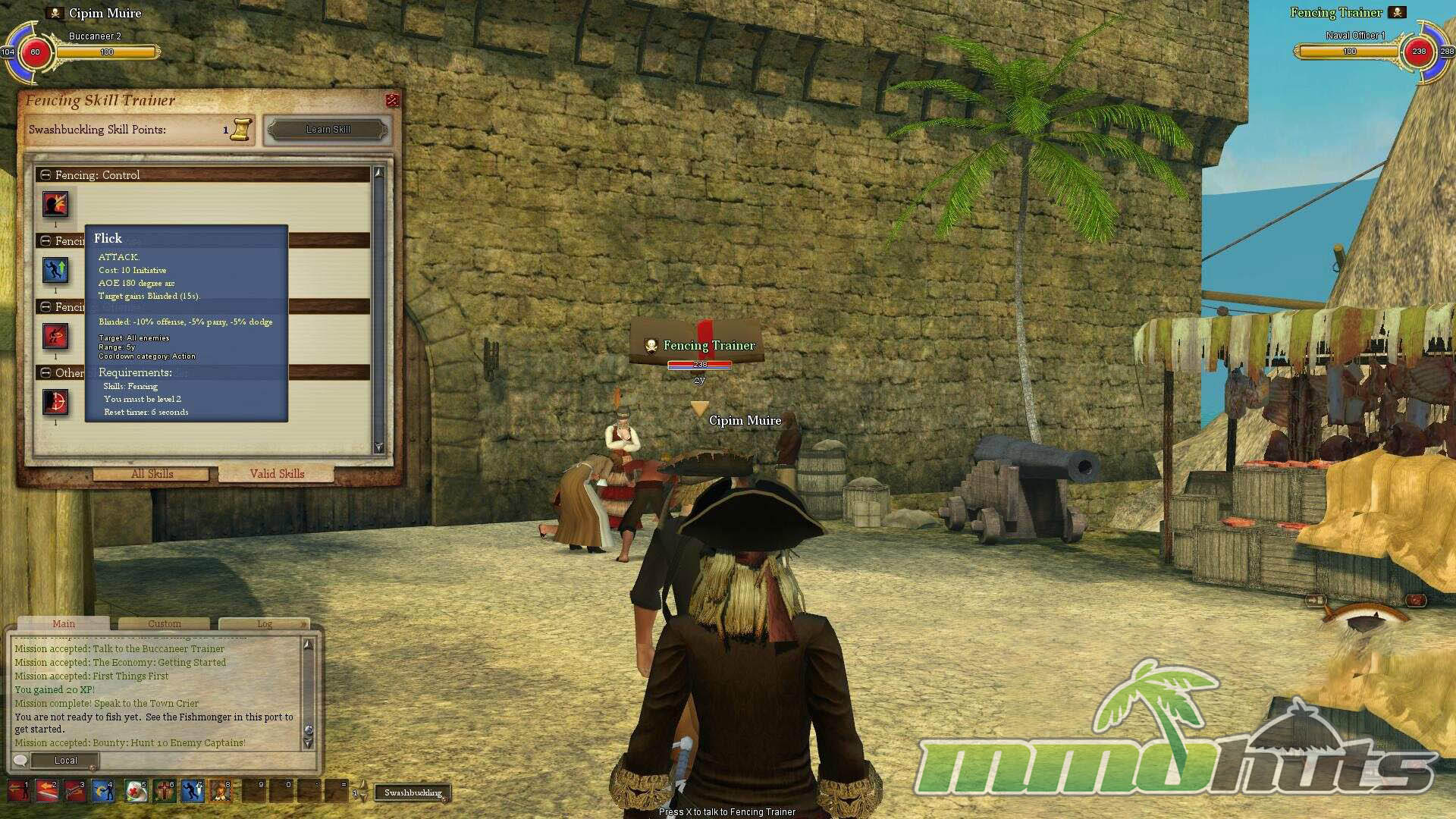 The on-foot component exists to support the seafaring fantasy, not to replace it. Swashbuckling appears in mission instances, tavern brawls, duels, and especially boarding actions. The system uses a third-person, ability-driven approach with combos, blocks, and situational skills rather than a modern action-combat feel.