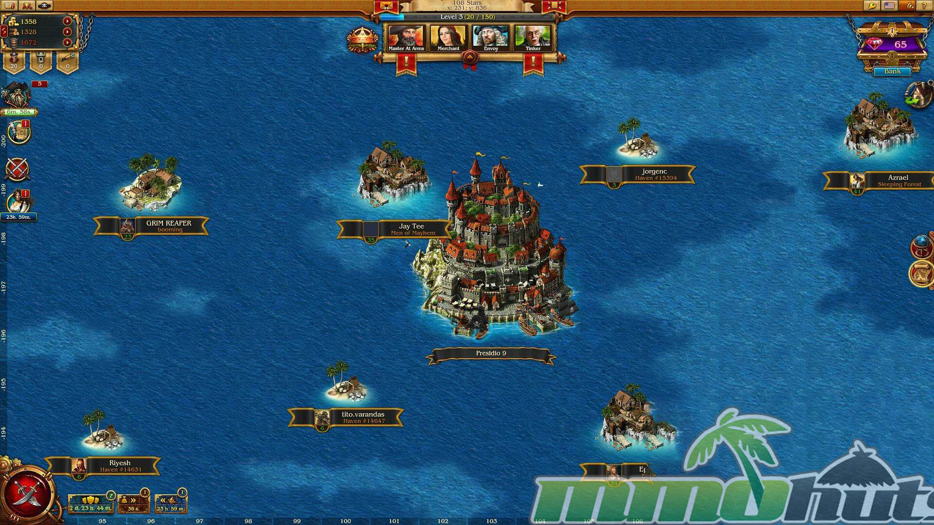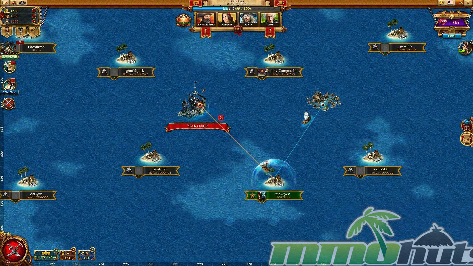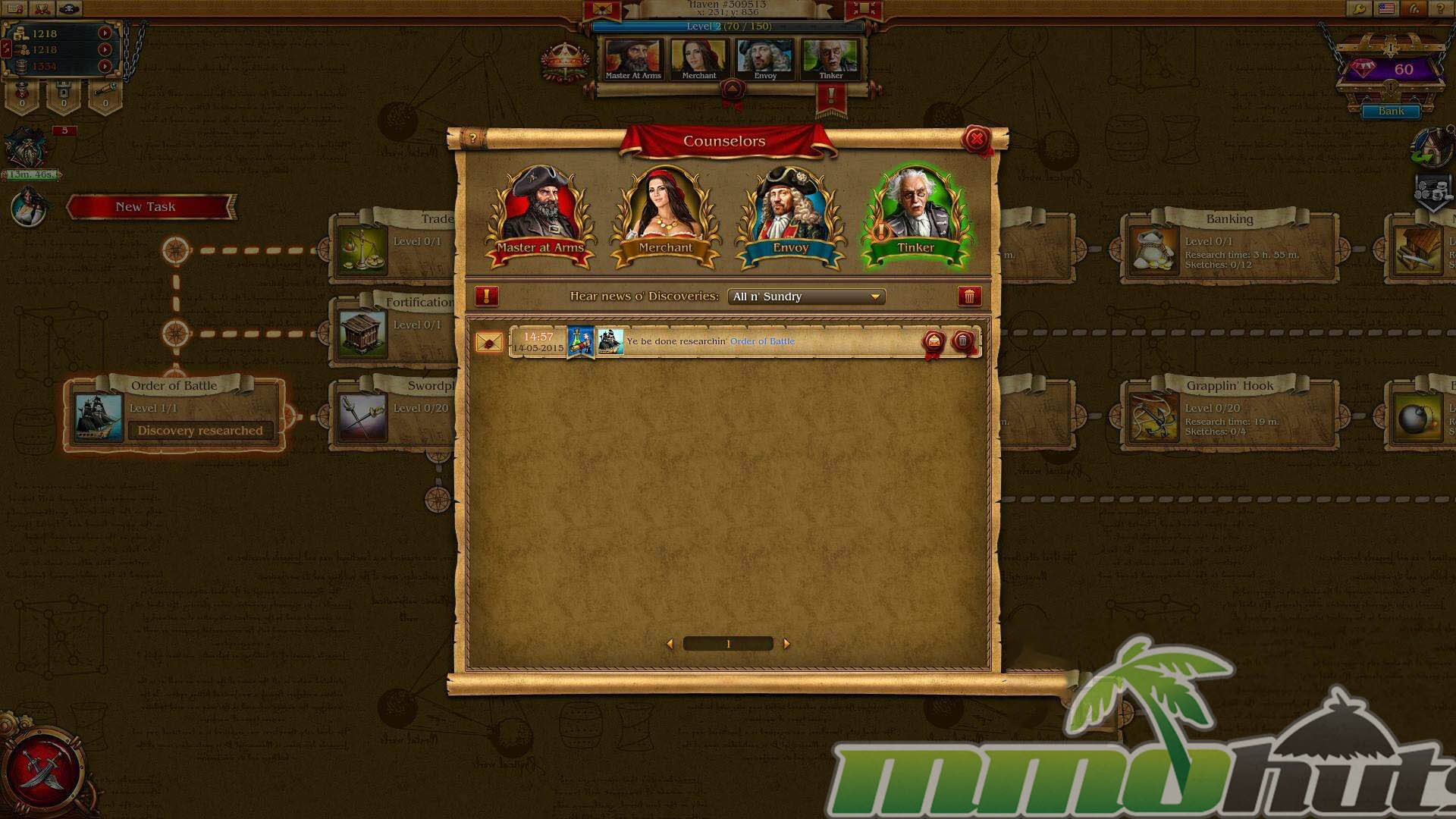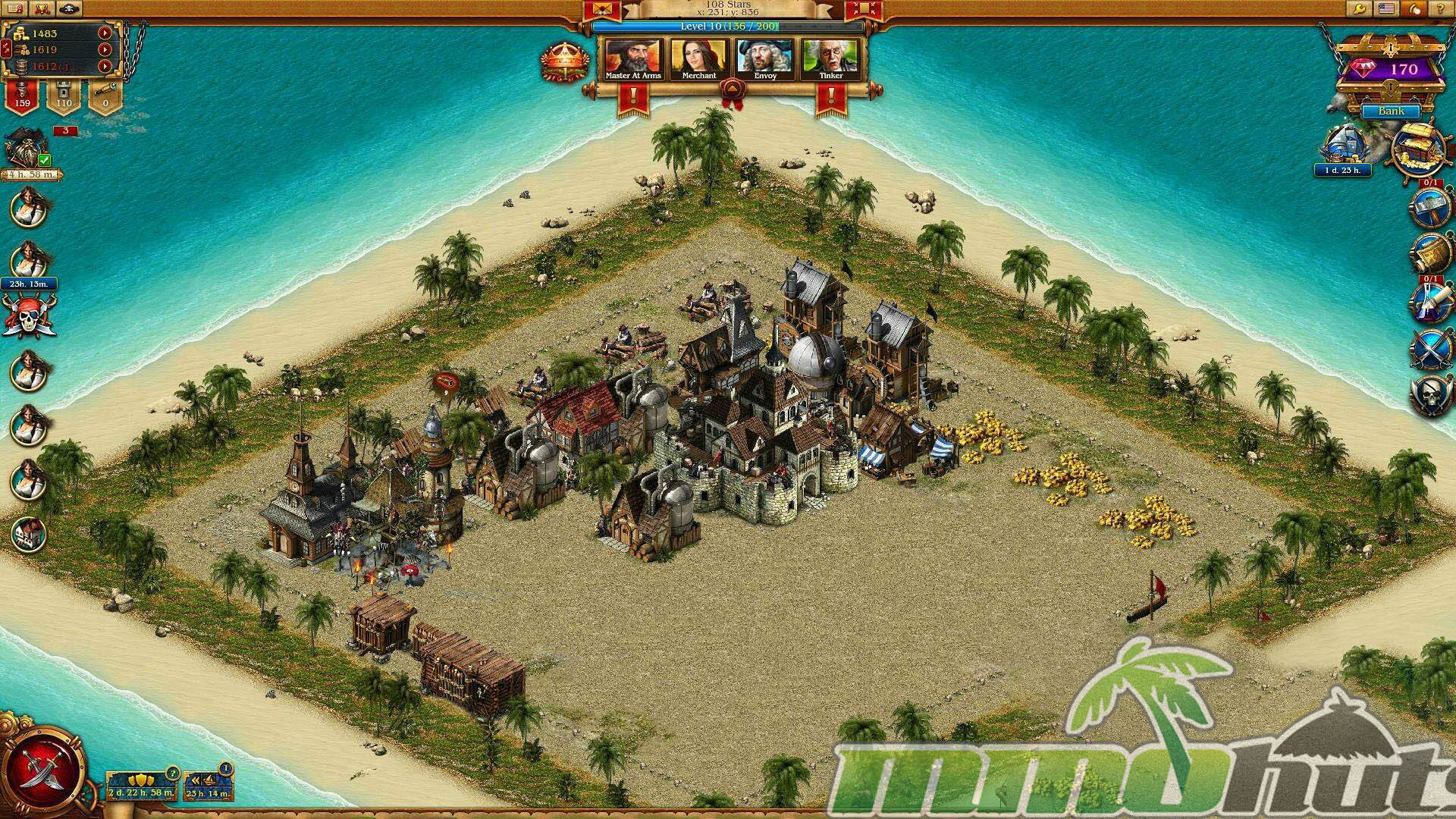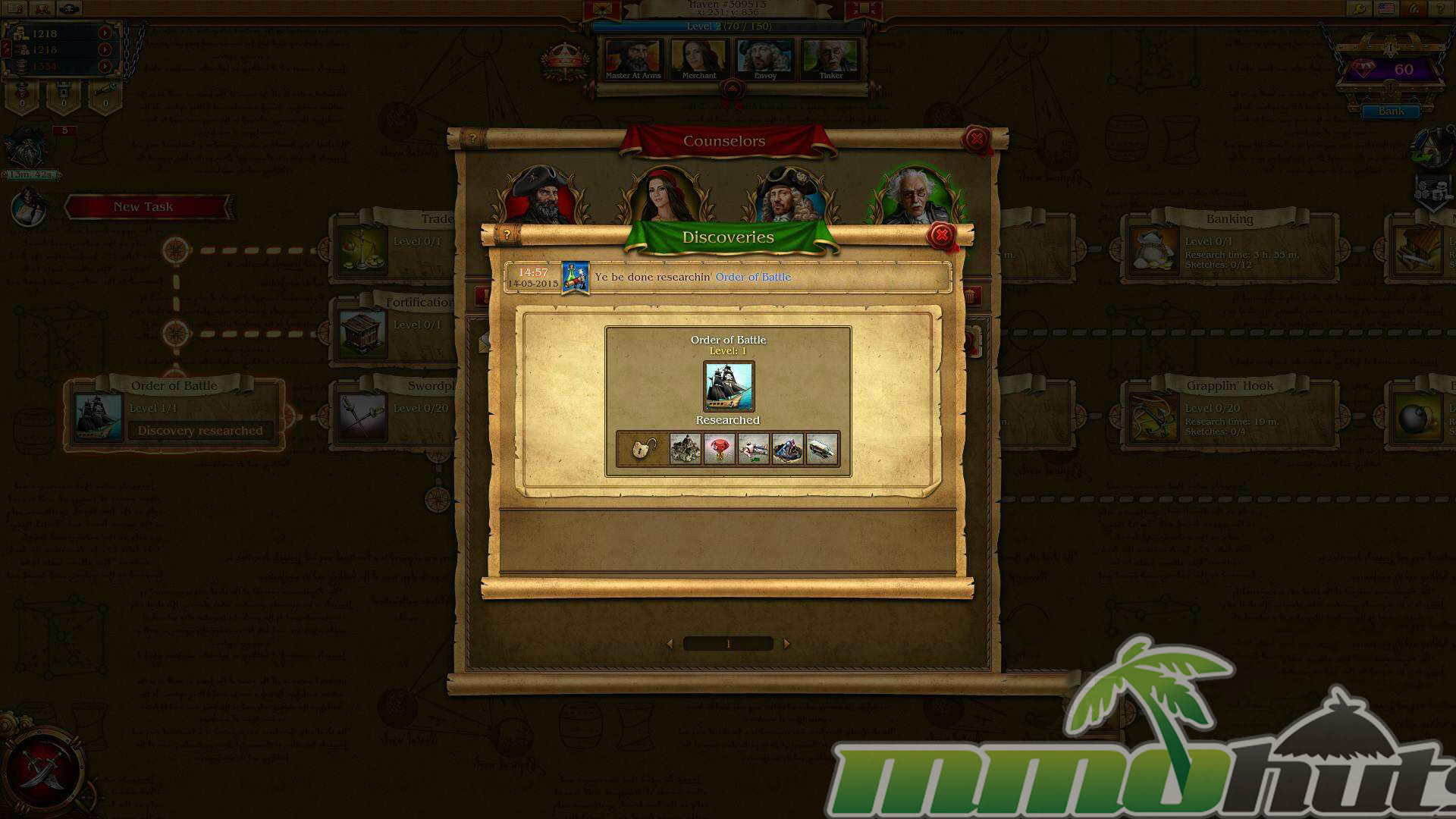 Like most strategy MMOs, the economy is the real engine of progression. Gold, Lumber, and Rum are the primary resources, produced by the Gold Mine, Lumber Yard, and Rum Cellar. These are spent on construction, upgrades, recruitment, and research-style progression, so shortages often become the main bottleneck when you are trying to push forward.