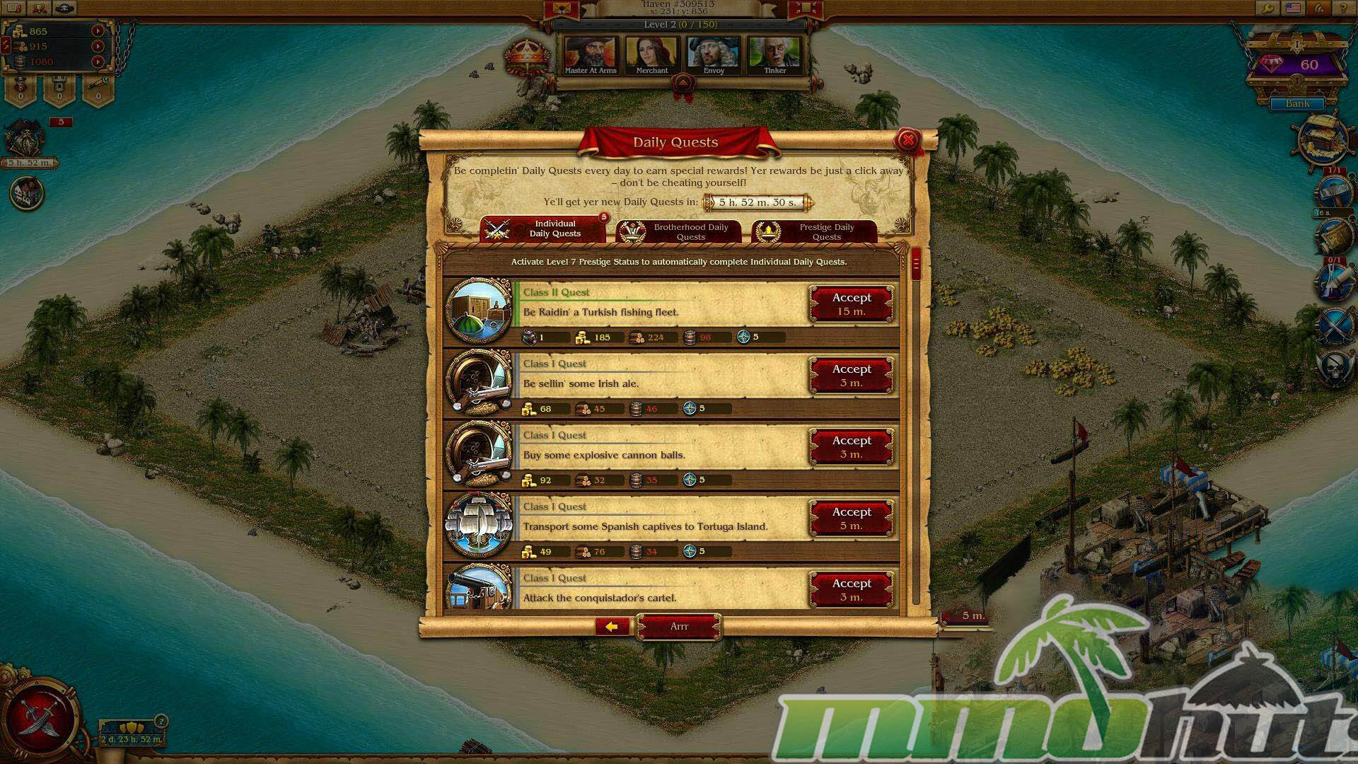 Your first sessions take place on Isla Fortuna with Captain Anne O’Malley acting as your constant point of contact. She explains what each screen does, nudges you toward the next building or upgrade, and generally keeps the opening from feeling like a wall of icons and timers. The tutorial is also one of the game’s more distinctive elements because it is fully voice-acted and written with a bit of pirate personality, which helps the game feel less sterile than many browser strategy titles.
