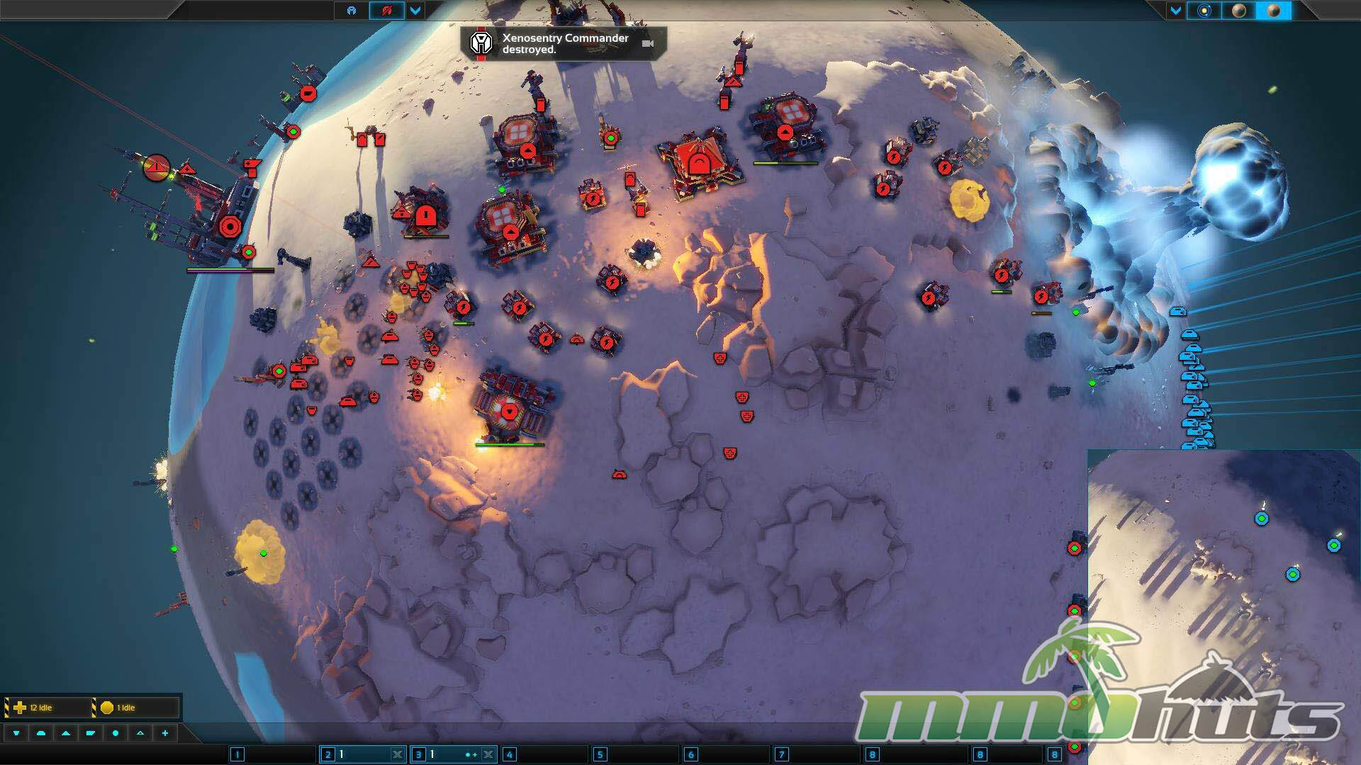 It is a smart solution to the visibility challenges of a 3D planetary RTS, and it complements other interface tools that aim to keep the player in control even when the unit count becomes intimidating.