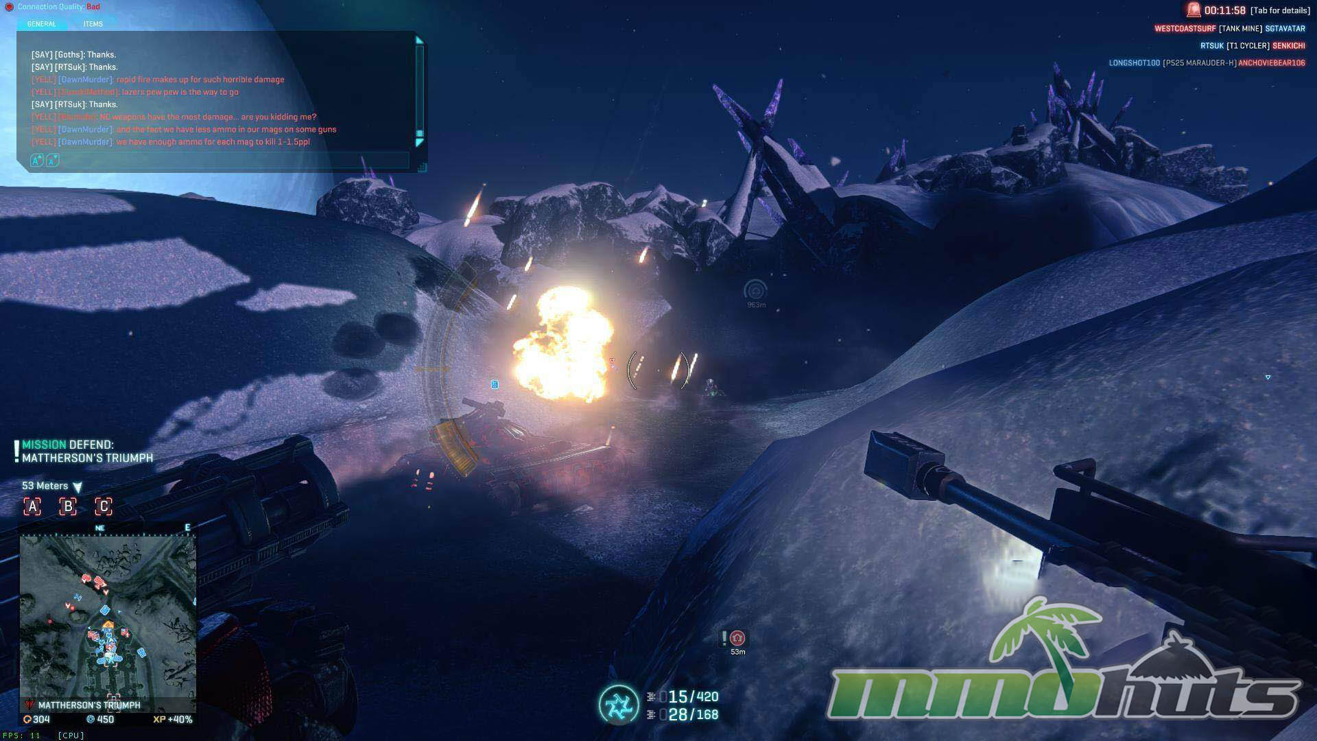 | Publisher: Daybreak Game Company Playerbase: Medium Type: MMOFPS Release Date: Nov. 20, 2012 (NA/EU) Pros: +Enormous continents built for large fights. +Truly massive engagements (up to 1,200 on one continent). +Responsive FPS gunplay. +Strong visuals for a large-scale MMO shooter. +Rewarding loadout tuning and progression. Cons: -High barrier to entry for new soldiers. -Occasional latency and performance hiccups. |