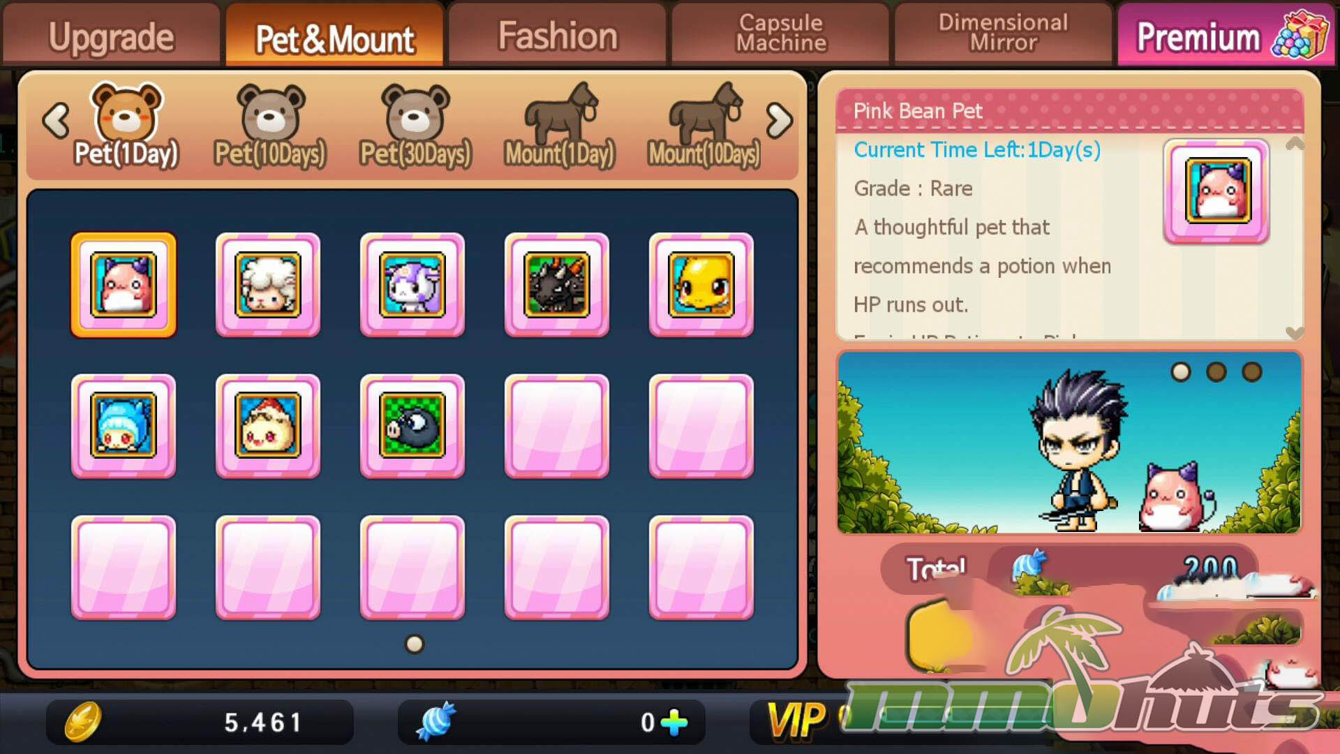 Like many mobile MMORPGs, Pocket MapleStory’s in-app purchases provide meaningful advantages. The Cash Shop includes Upgrade Cubes and Scrolls for improving gear, time-limited Pets (1 to 30 days) that assist with loot pickup and potion reminders, cosmetic outfits, Capsule Machines that dispense random equipment, Dimensional Mirrors for dungeon entry, and experience boosts. Most purchases require Candies (premium currency), with a few lower-end options available through non-premium means.