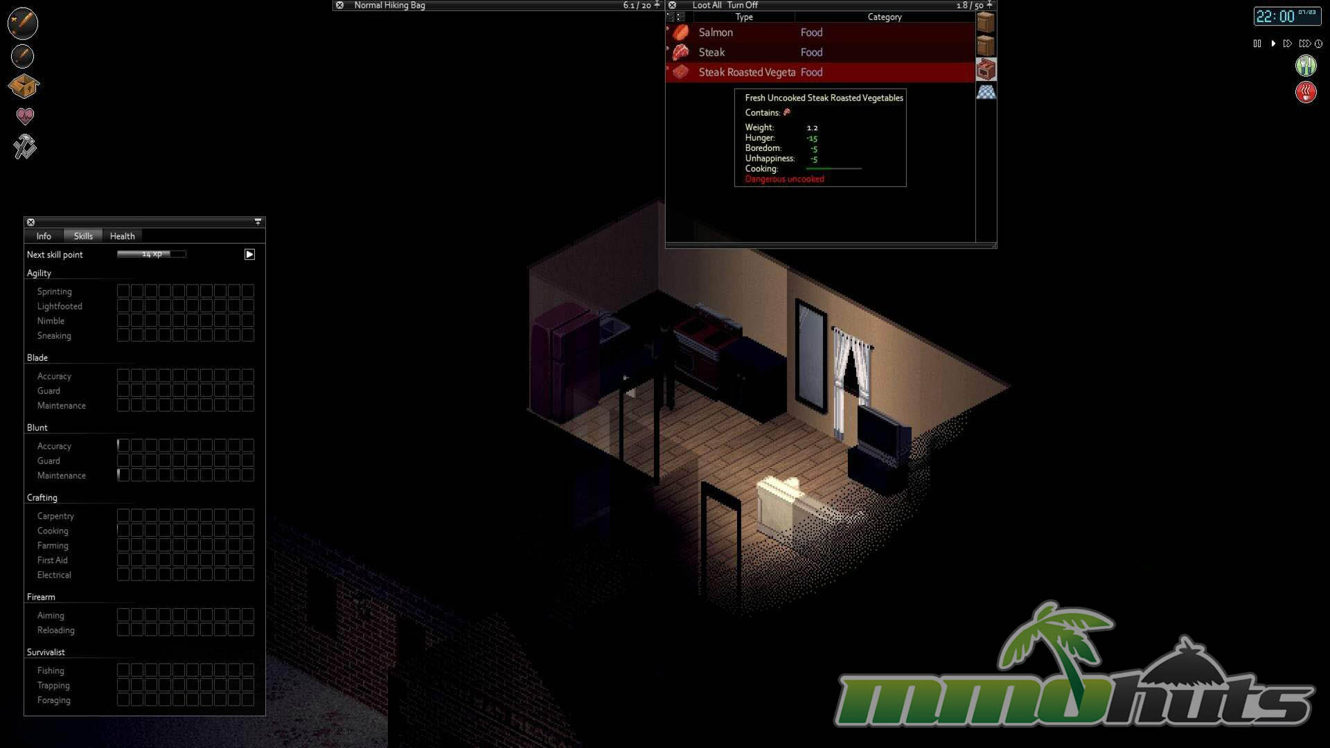 Progression in Project Zomboid is tied to doing. Using tools, cooking food, building barricades, fighting with specific weapon types, all of it contributes to experience and proficiency. Skills improve through repetition, and the system rewards specialization without demanding it. If you rely on blunt weapons, you will naturally become more reliable with them over time, and if you spend your days cooking and preserving food, that becomes a meaningful advantage rather than a cosmetic hobby.
