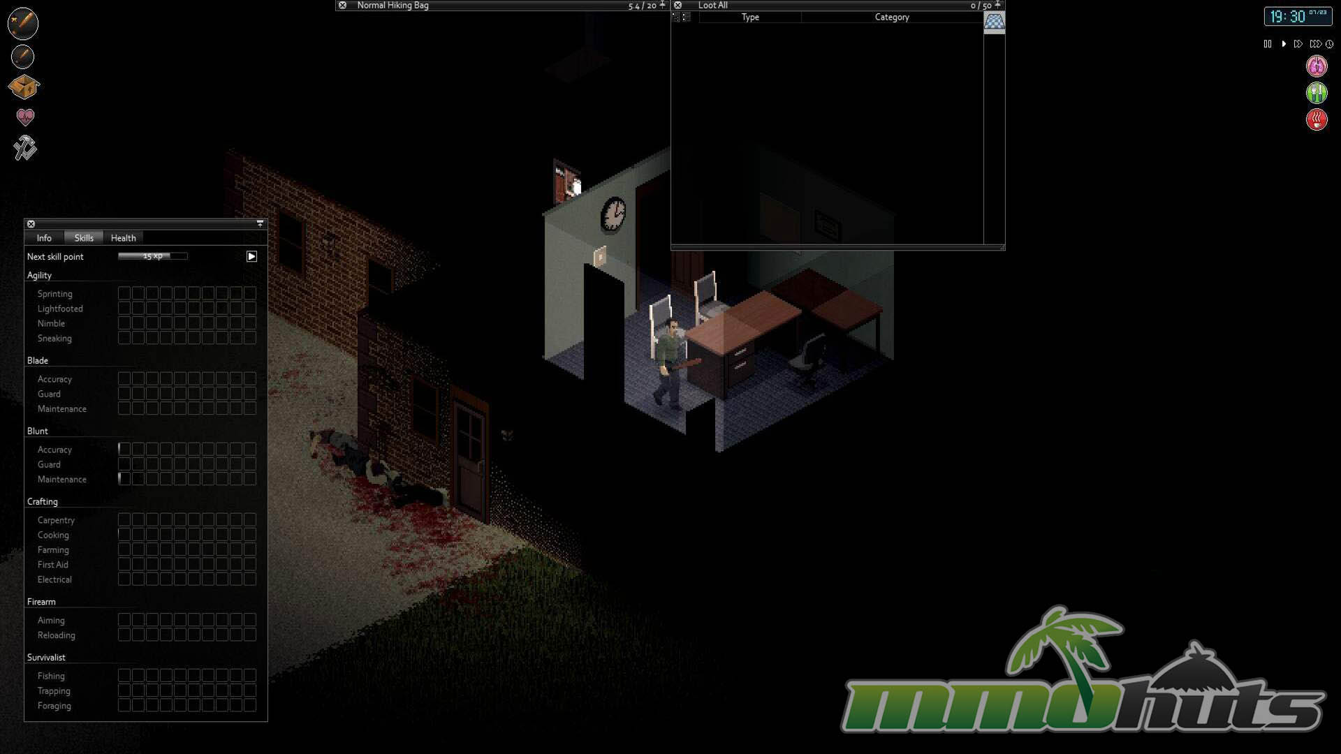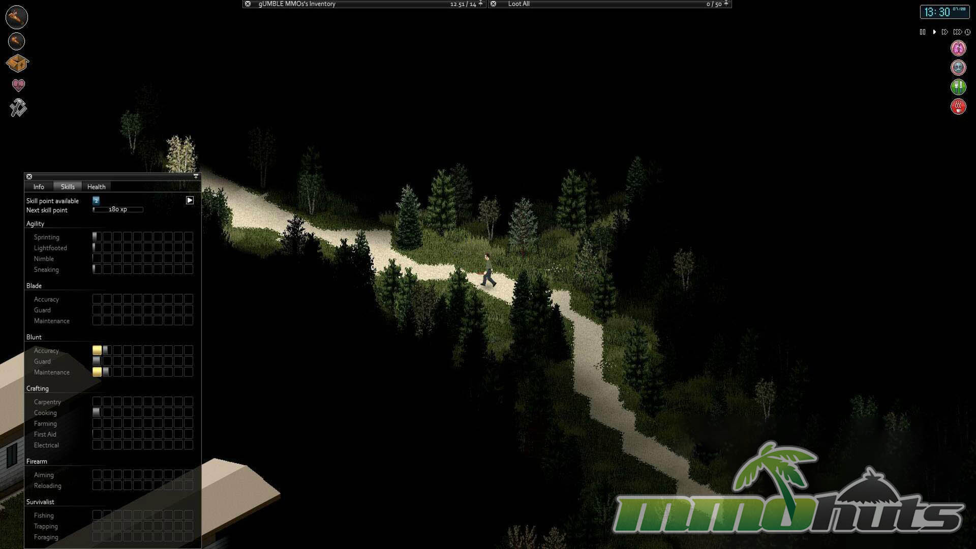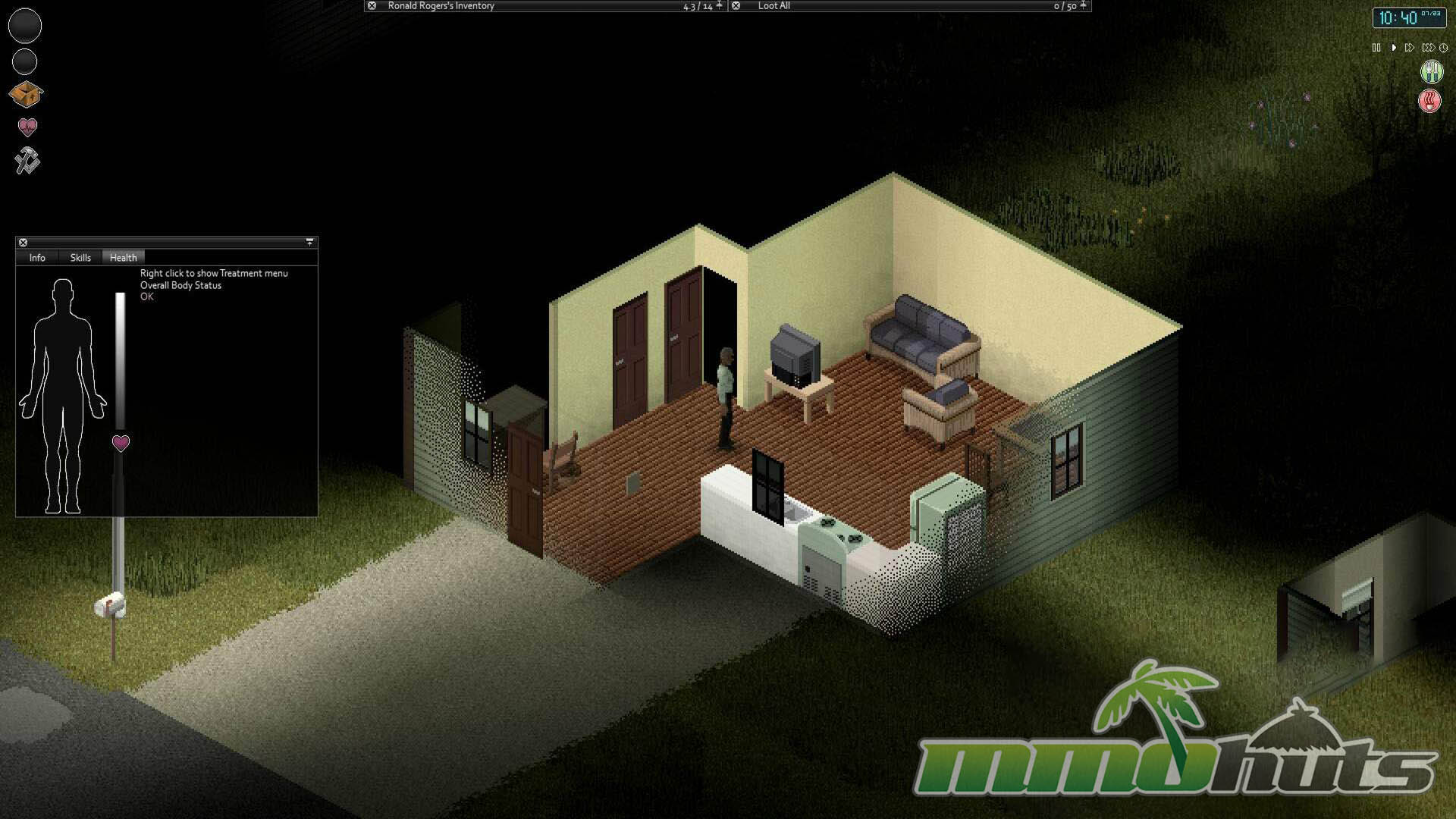 Project Zomboid does not ease you in gently. From the opening moments you are pushed to improvise, gather basic supplies, and find something, anything, that can serve as a weapon. The early game loop is tense because you are weak, under-equipped, and one injury can cascade into disaster. Even something as simple as breaking glass to enter a building can turn into a problem if it leaves you bleeding or attracts attention.
