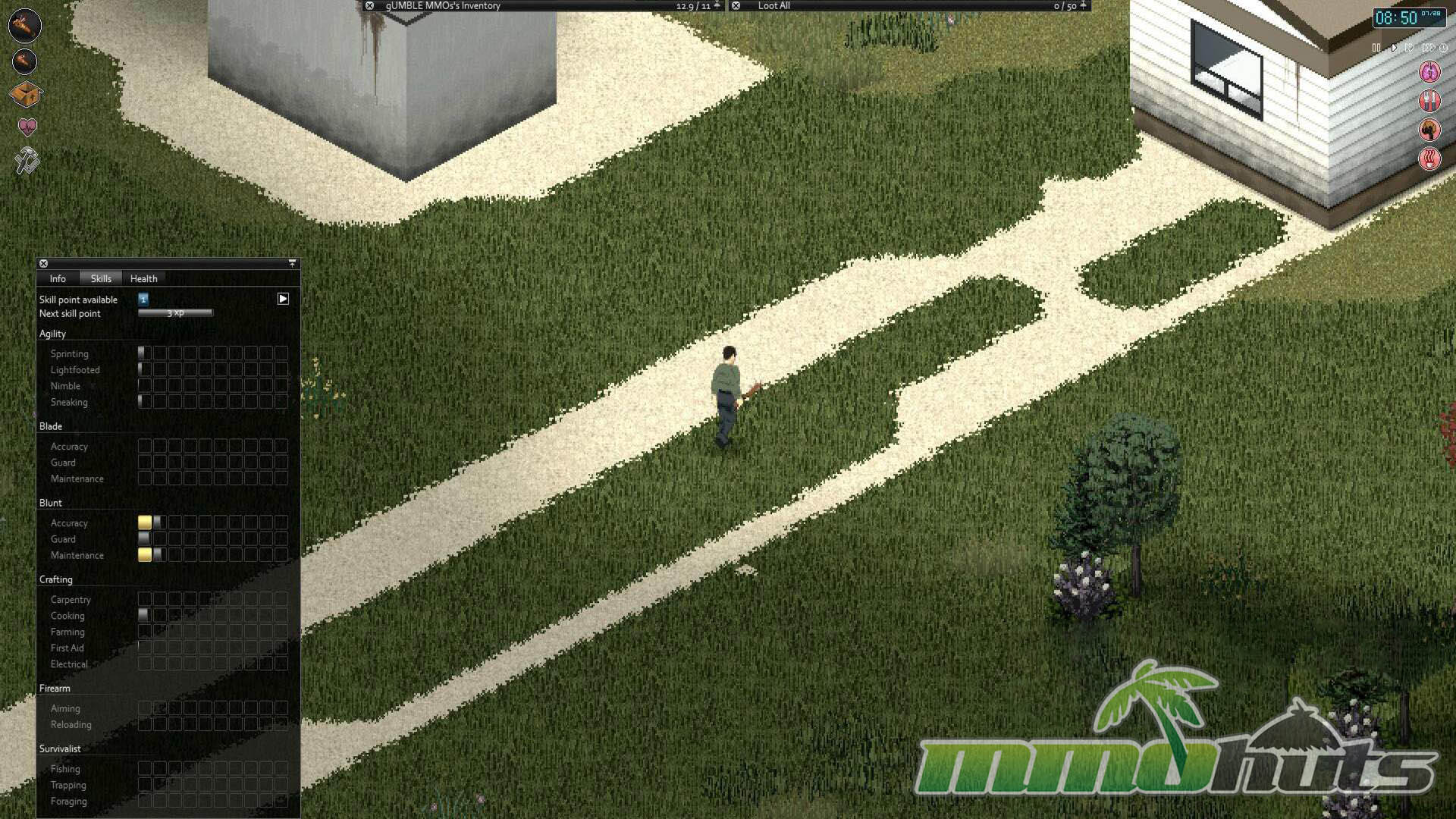 Project Zomboid does not ease you in gently. From the opening moments you are pushed to improvise, gather basic supplies, and find something, anything, that can serve as a weapon. The early game loop is tense because you are weak, under-equipped, and one injury can cascade into disaster. Even something as simple as breaking glass to enter a building can turn into a problem if it leaves you bleeding or attracts attention.