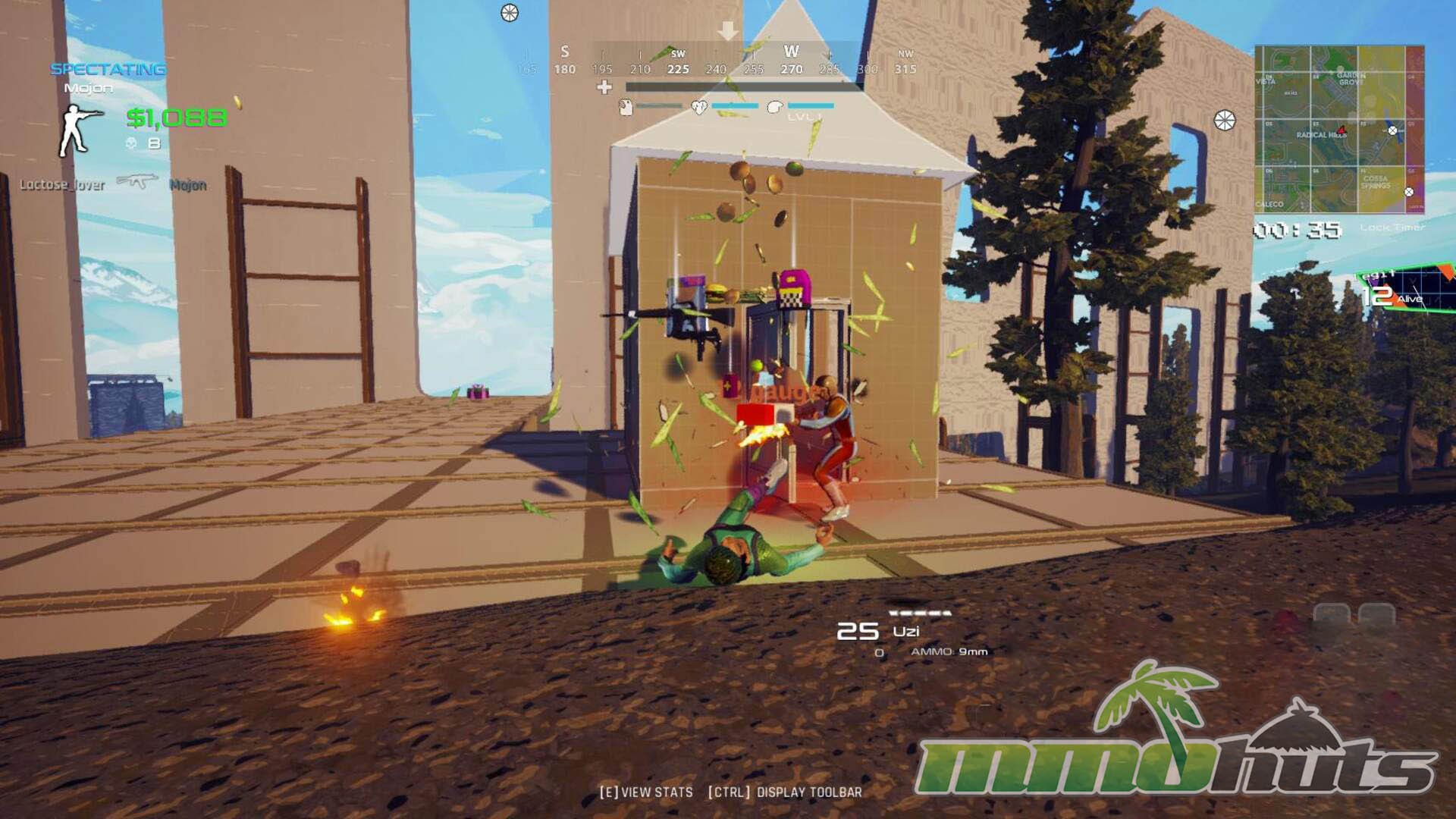 Where Radical Heights attempts to differentiate itself is in how it treats money. Cash earned during a match is not just a score counter, it is a persistent resource that can be banked and brought into future games. In practical terms, that means players who stick with the game can start a match with the ability to buy weapons and items from vending machines placed around the map, rather than relying solely on early looting luck. On paper, it is a clever idea, giving each round a light sense of long-term planning.