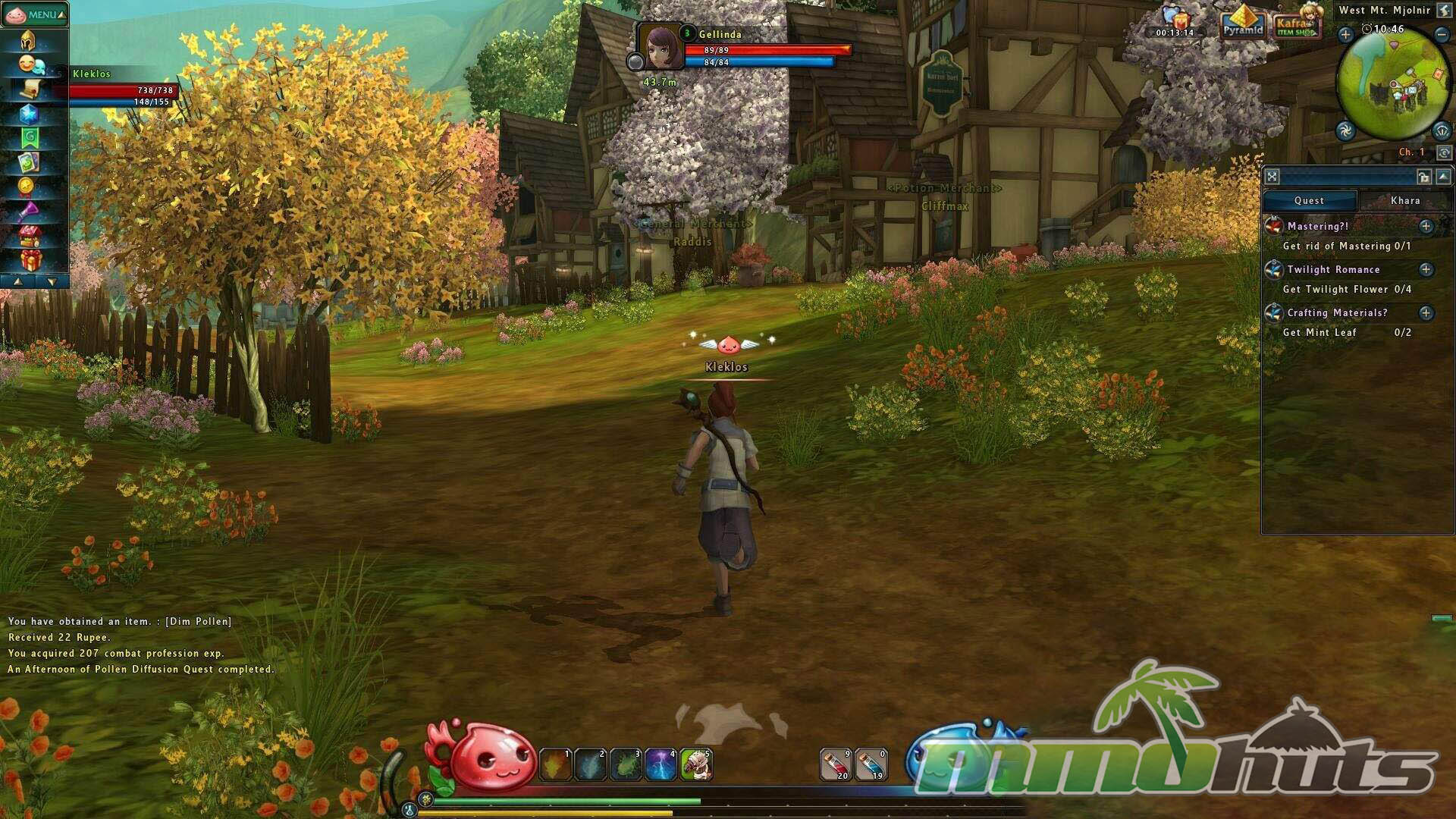 The opening hours are structured around guided quest chains that teach the fundamentals, combat inputs, skill usage, crafting, and how cards work. It is a fairly long onboarding phase, but it does a competent job of leading new players through the first stretch of leveling. Movement is handled with WASD, skills live on the number keys, and combat follows a standard MMO targeting model with auto-attacks and active abilities layered on top. Story beats appear from time to time in cutscenes, which helps the early routine feel less like pure checklist questing.
