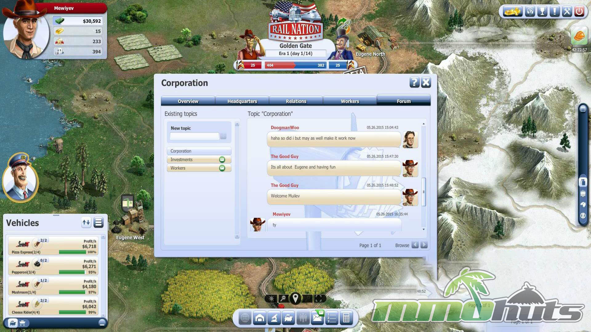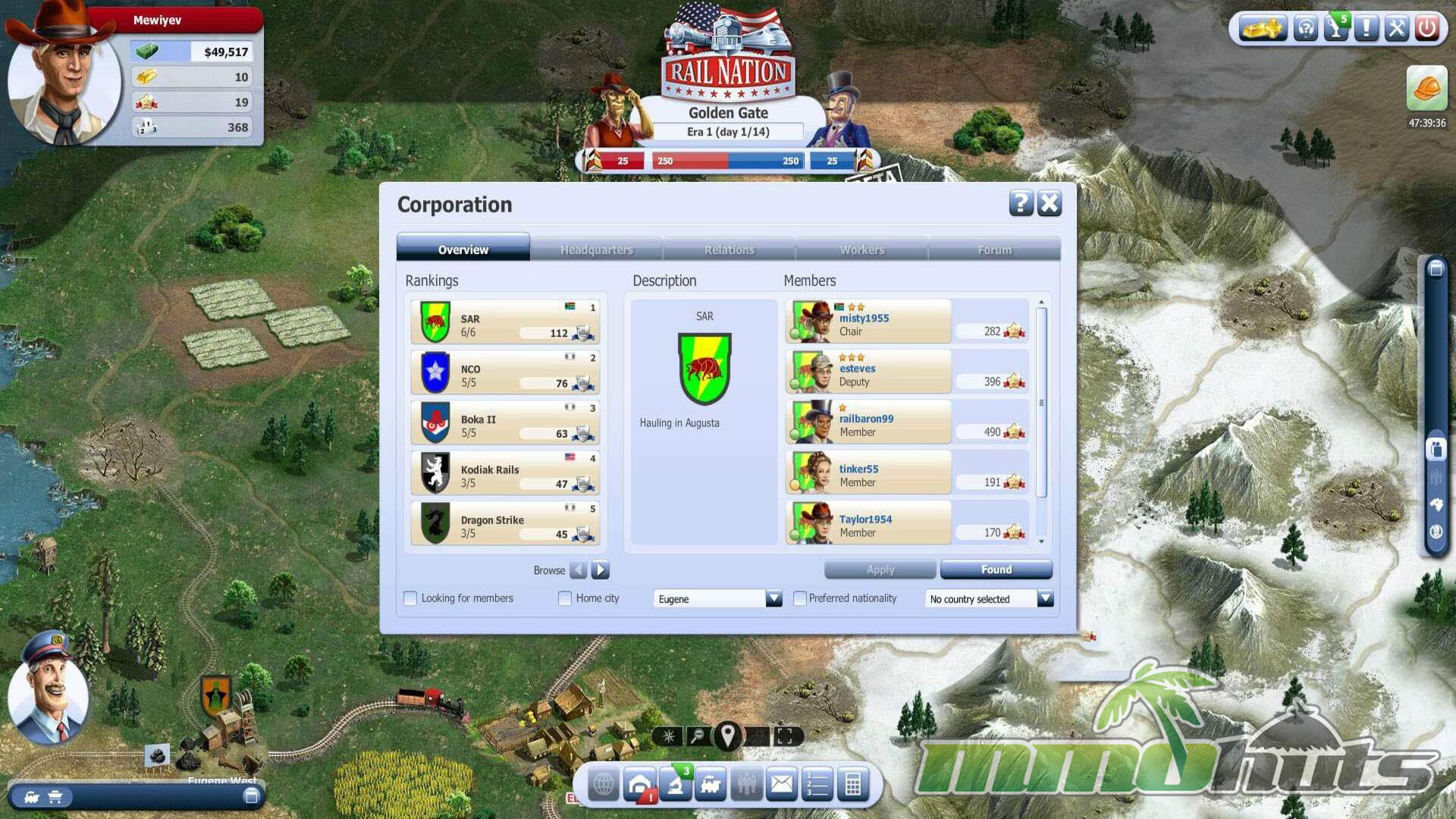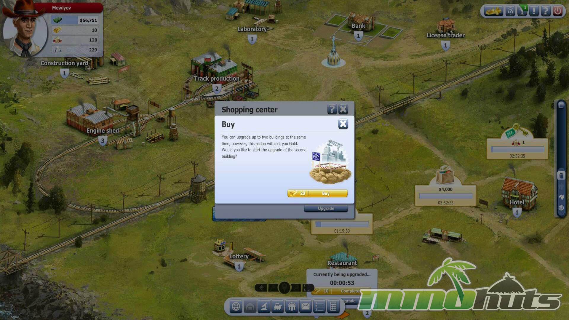 Rail Nation is a 2D, browser-based strategy MMO focused on building and optimizing a railroad business. At the start you align with one of two unions, the Western Pacific Railroad or the Eastern Atlantic Railway, then select a hub city to serve as your home base. Your central station acts as an operations center with several upgradable buildings that support your network, such as an engine shed for managing locomotives, a lottery building for extra perks, and a laboratory tied to research and improvements. As you invest in these facilities, your railroad becomes more efficient and better equipped to compete.
