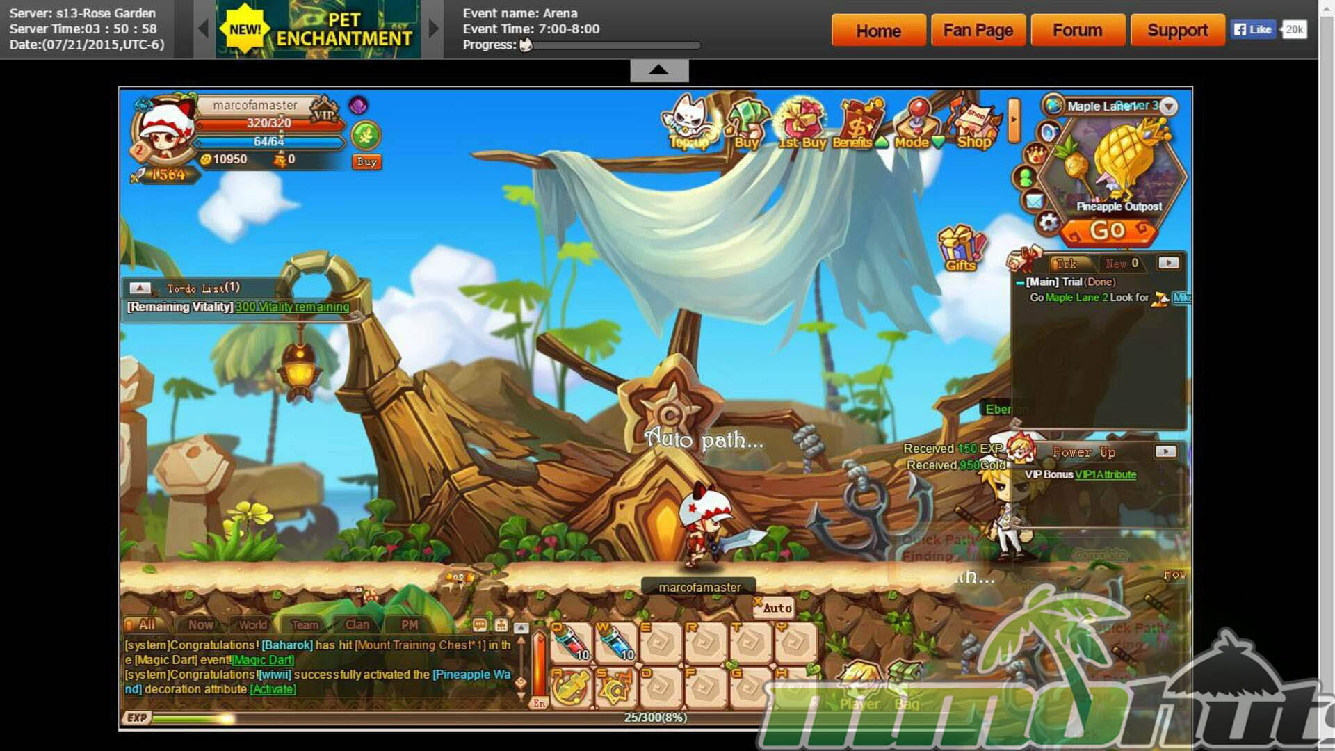 After the opening sequence, you wake up in Maple Lane and begin the standard MMORPG routine of talking to NPCs, accepting quests, and moving from objective to objective for Gold, EXP, and starter items. The game includes an auto-path option on Enter, which is handy when you just want to keep momentum, especially since the early hours are clearly designed to move you quickly toward your first major milestone.